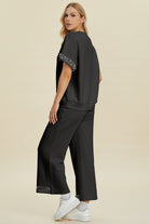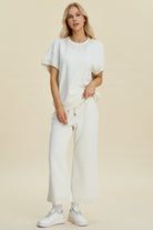 Double Take Full Size Pearl Detail Round Neck Top and Pants Set