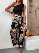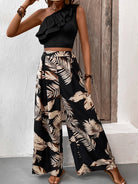 Honey Ruffled Sleeveless Top and Printed Pants Set