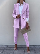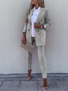 Lapel Collar Long Sleeve Blazer and Pants Set