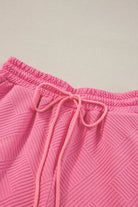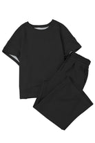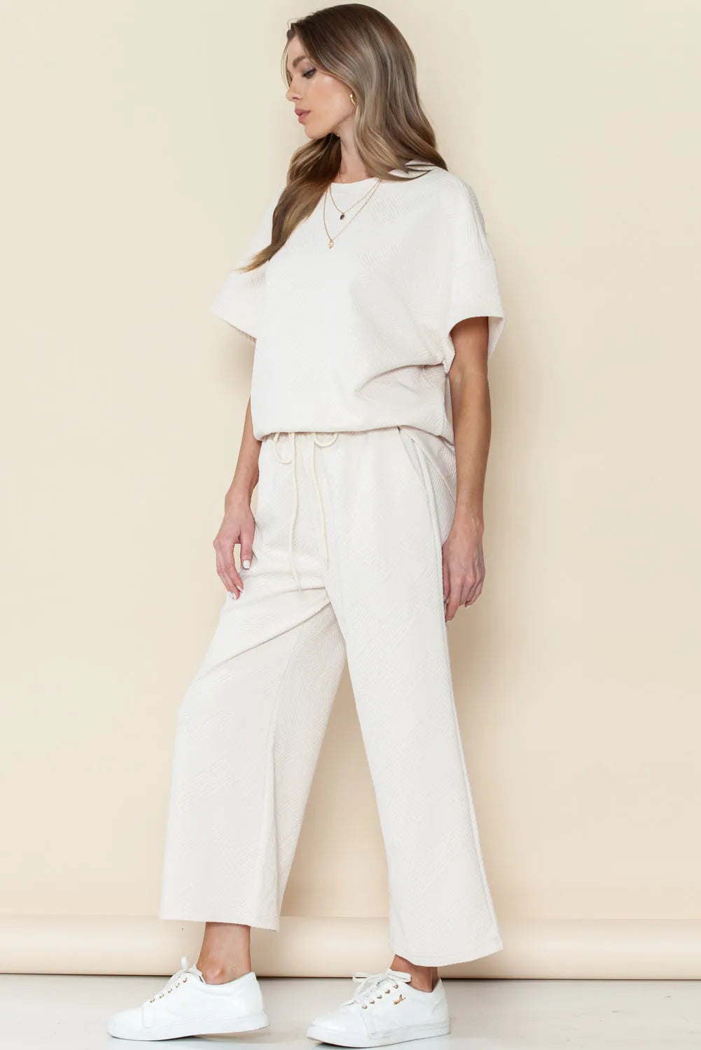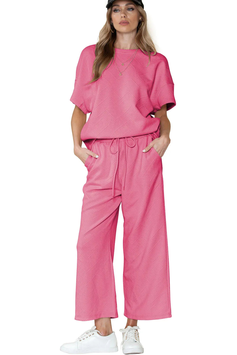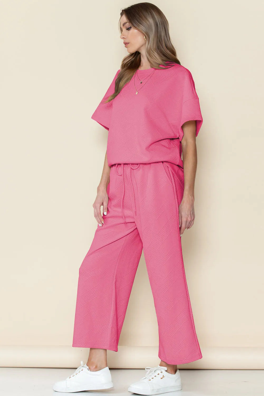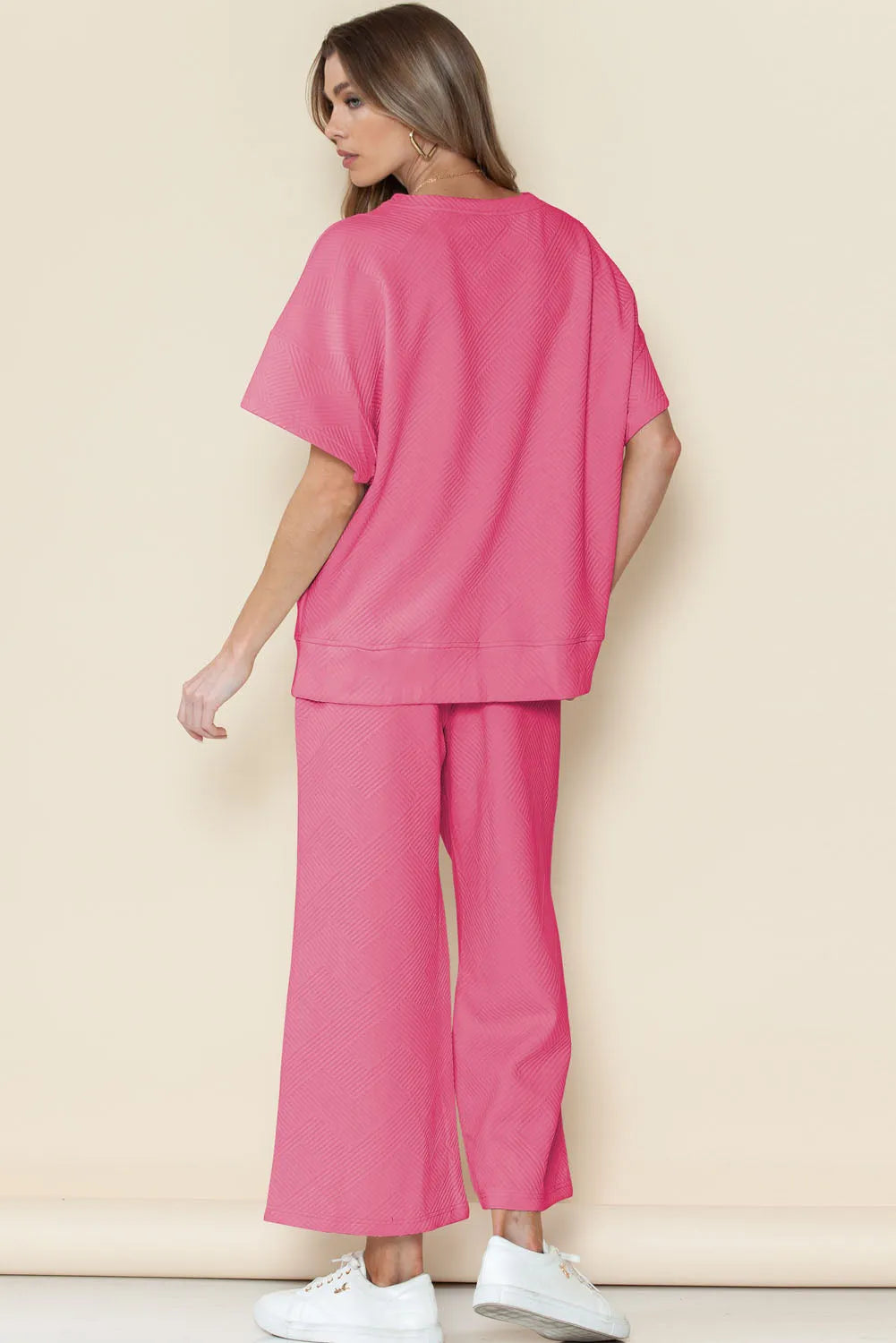 Navy Blue Textured Loose Fit T Shirt and Drawstring Pants Set