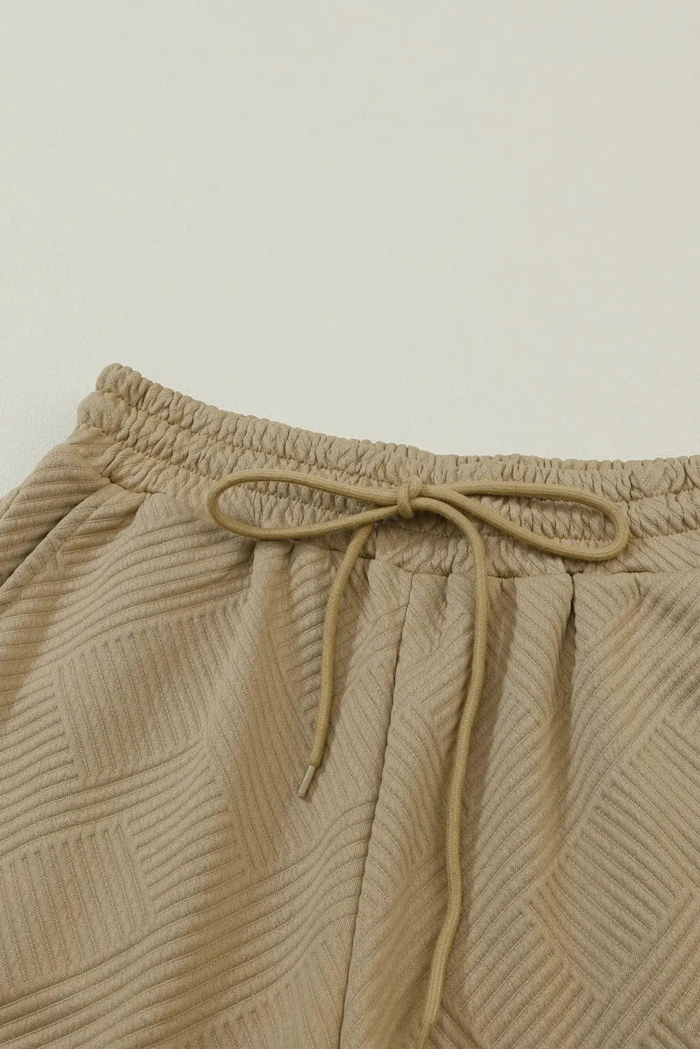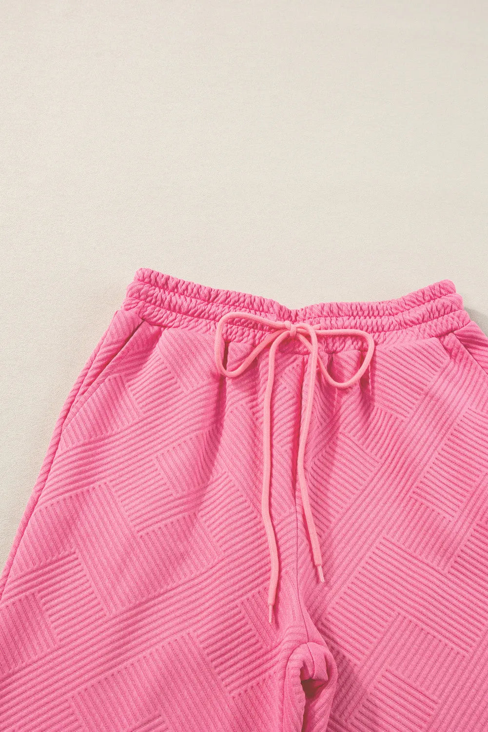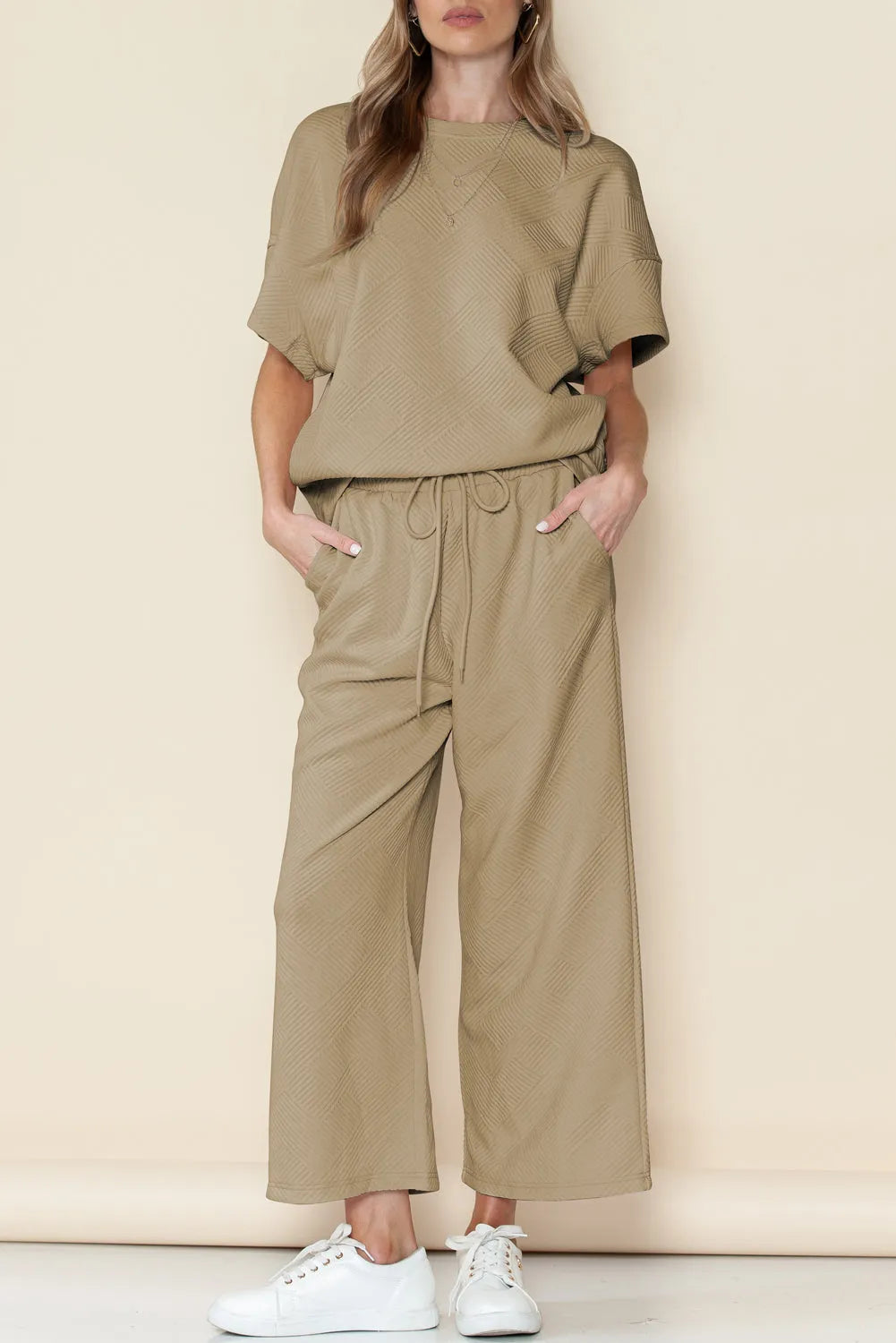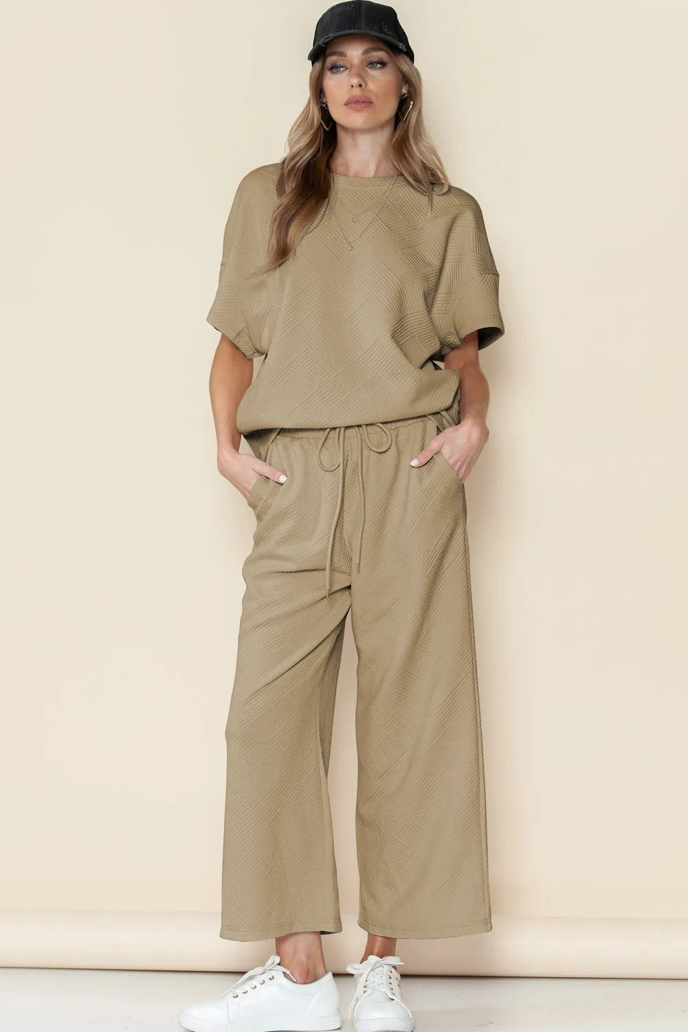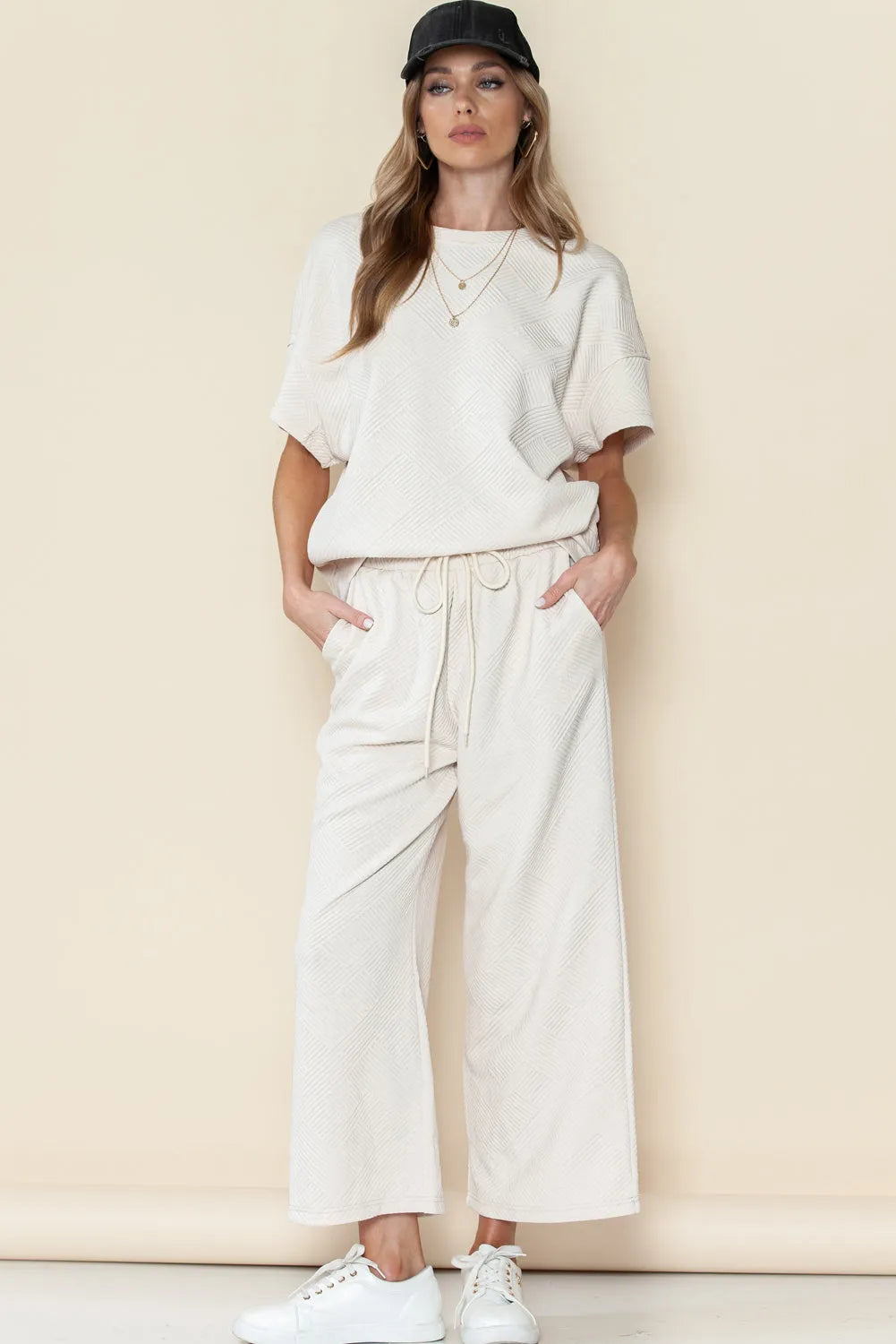 Navy Blue Textured Loose Fit T Shirt and Drawstring Pants Set