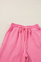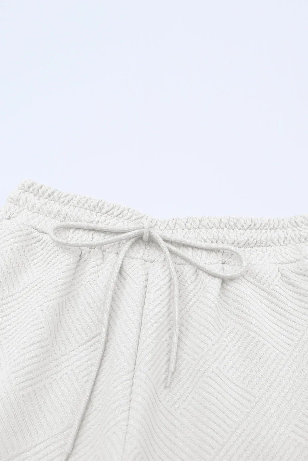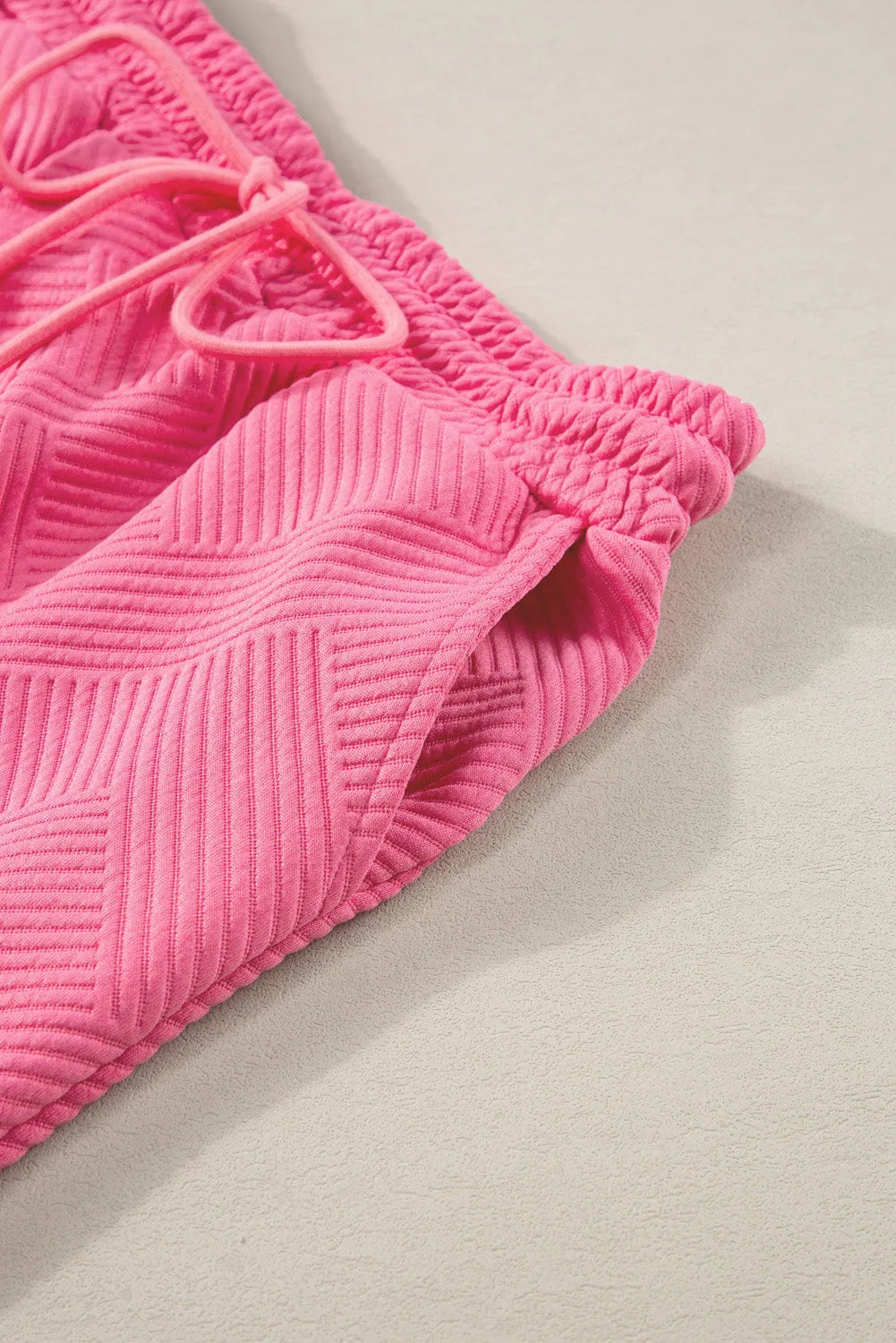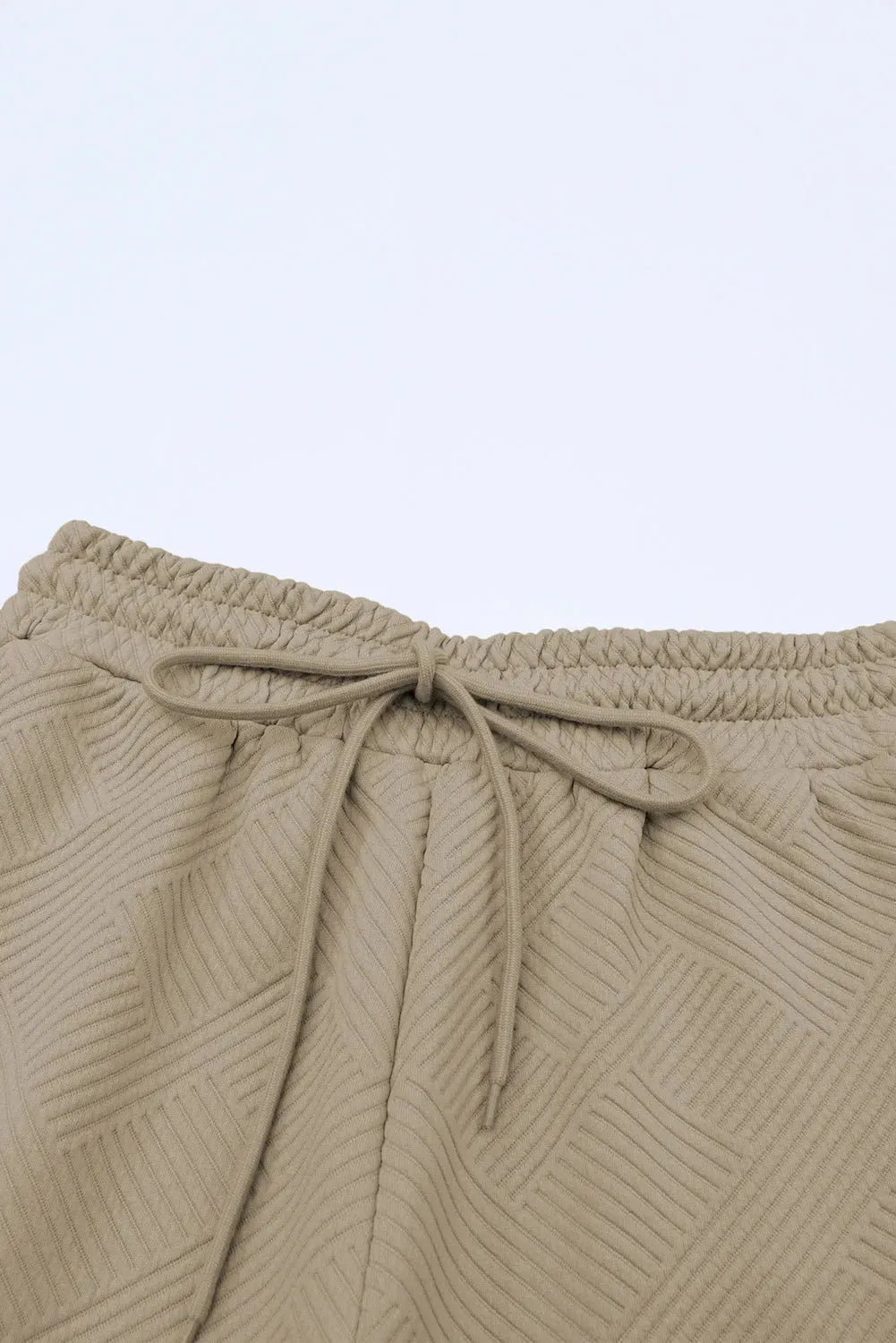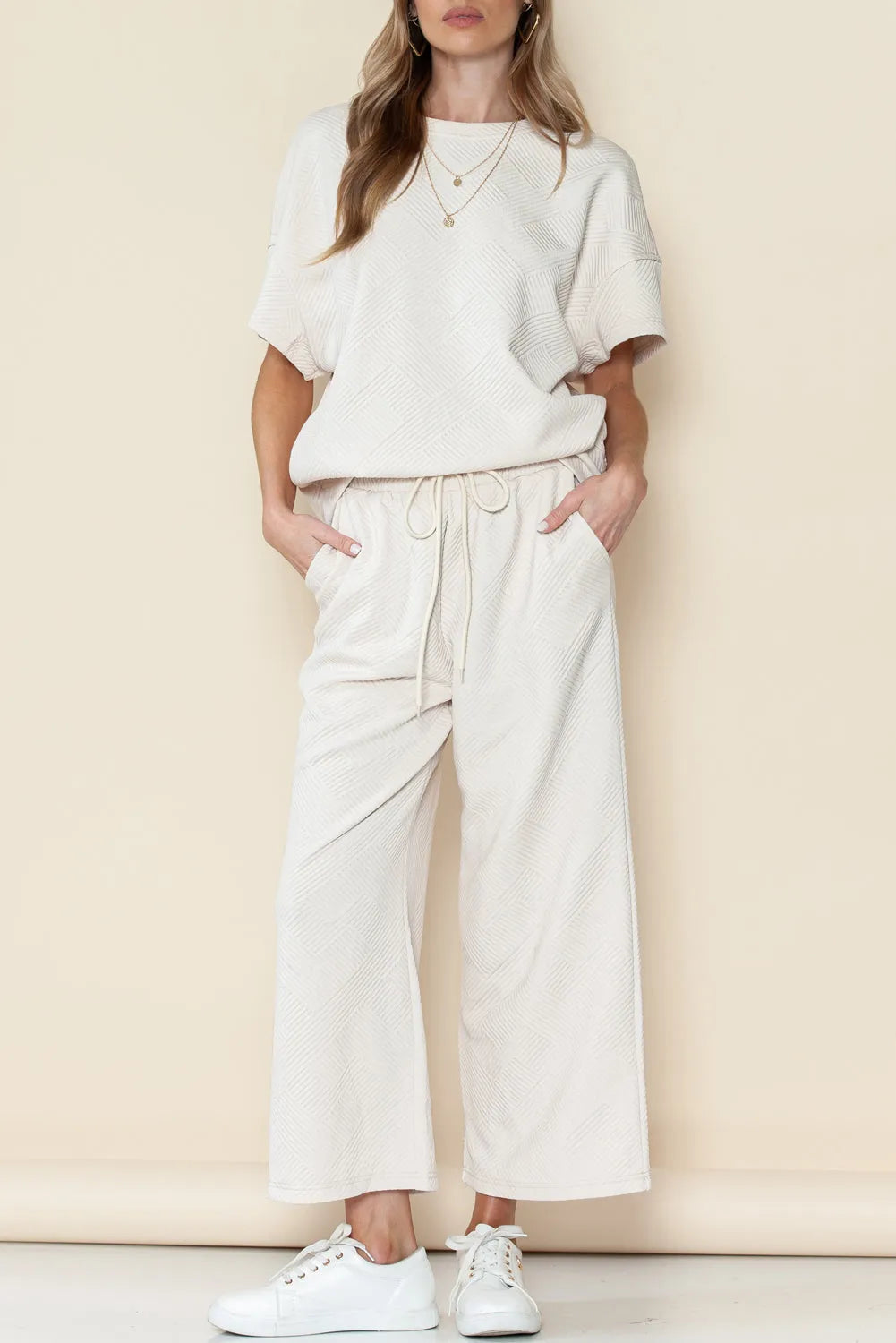 Navy Blue Textured Loose Fit T Shirt and Drawstring Pants Set