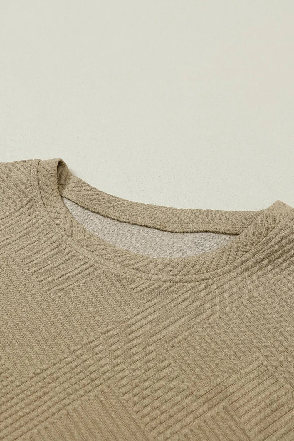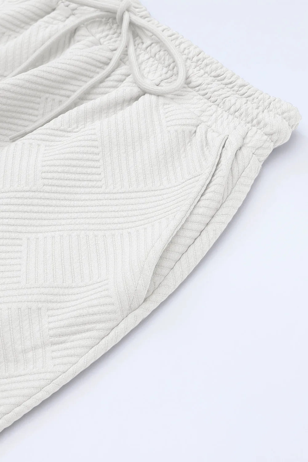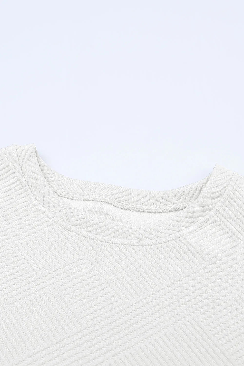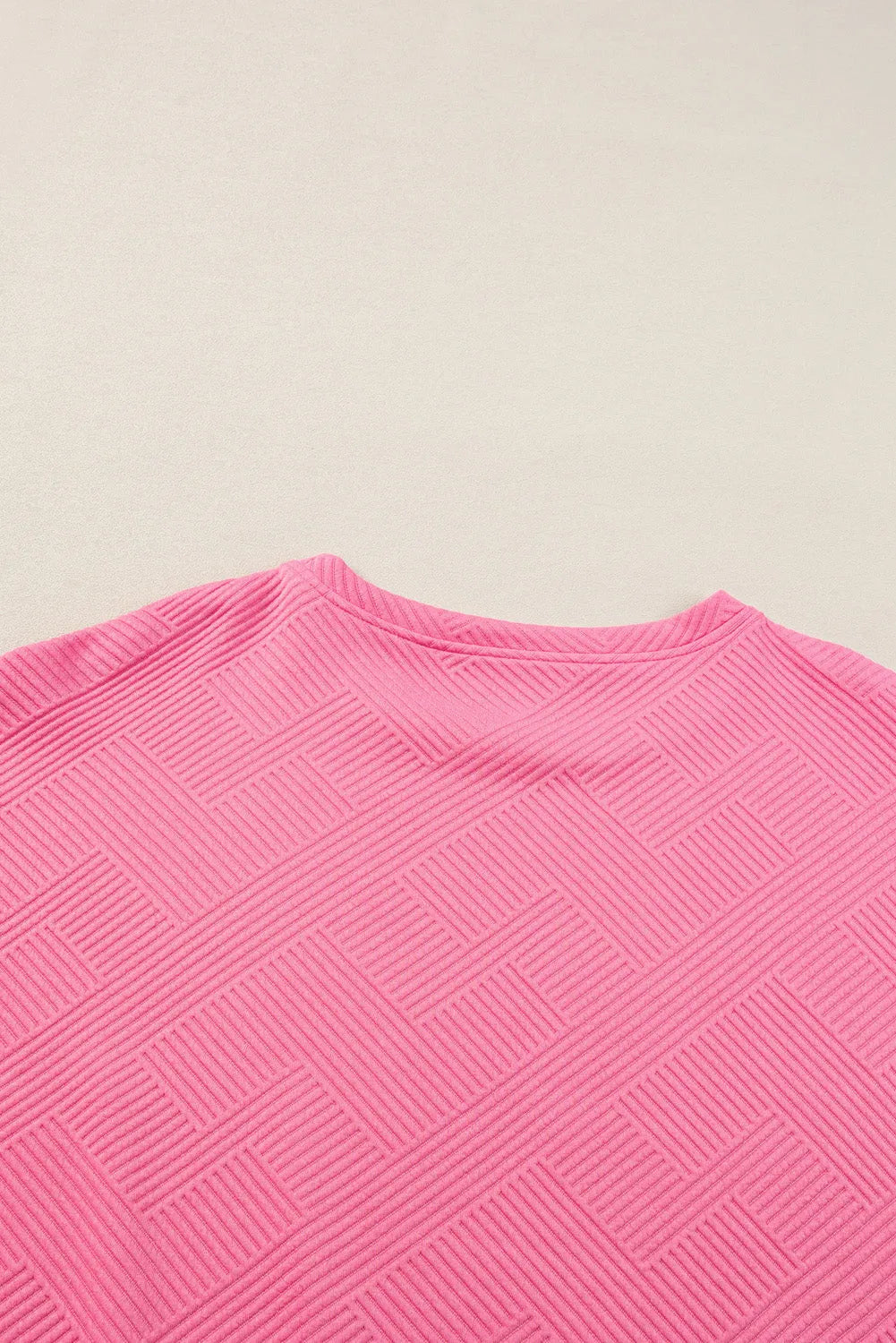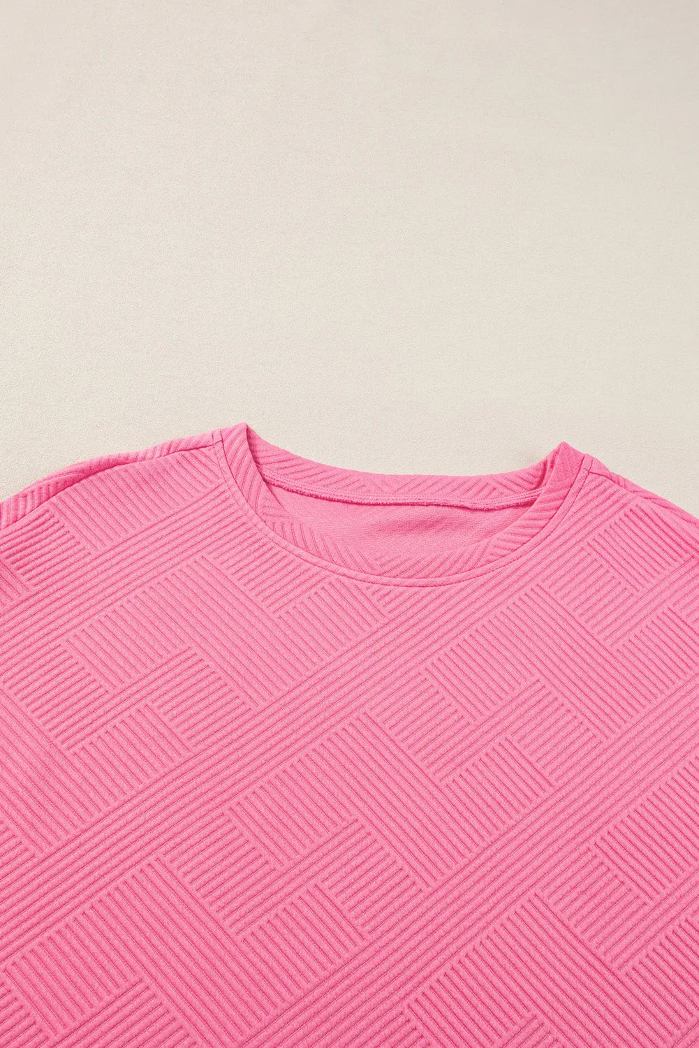 Navy Blue Textured Loose Fit T Shirt and Drawstring Pants Set