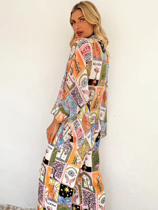 New bat sleeve printed loose suit casual home trousers two-piece set