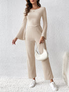 Ribbed Flare Sleeve Top and Pants Set