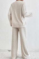 Ribbed Half Button Knit Top and Pants Set