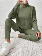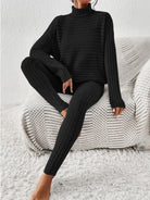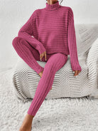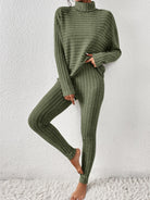 Ribbed Turtleneck Top and Pants Set