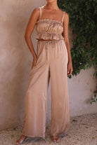 Ruffled Sleeveless Top and Wide Leg Pants Set