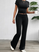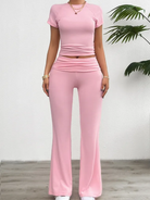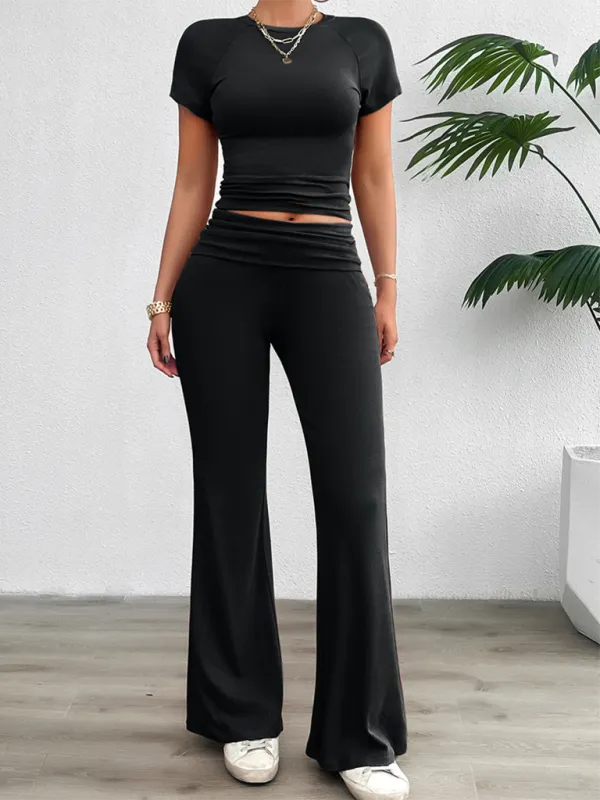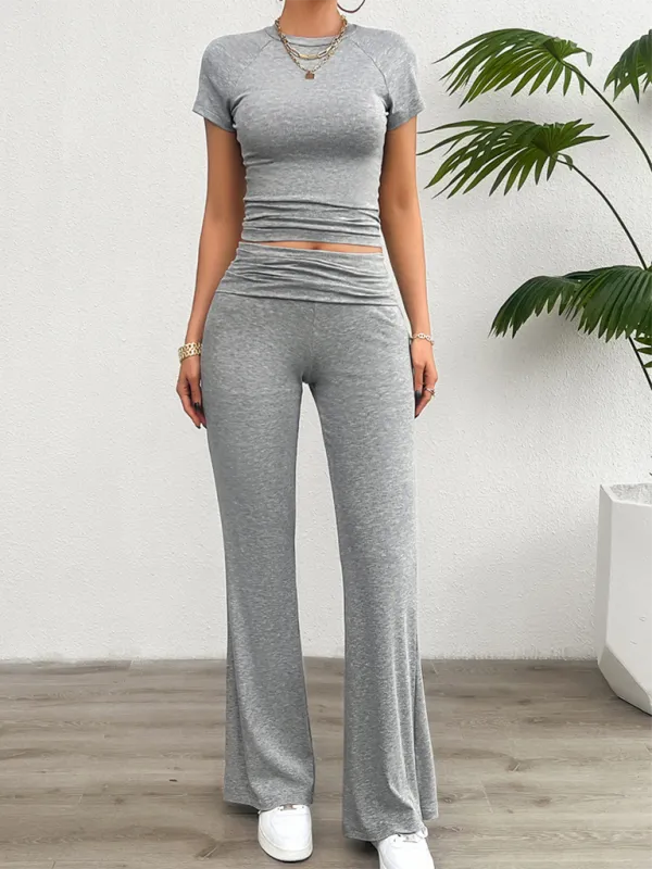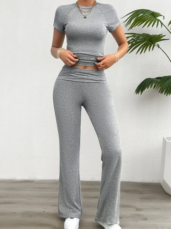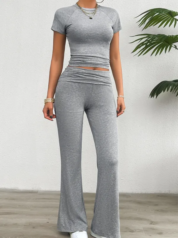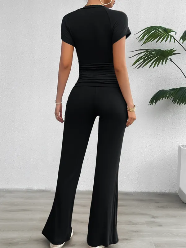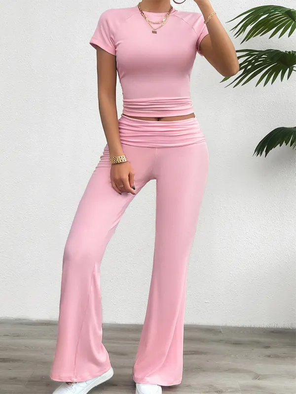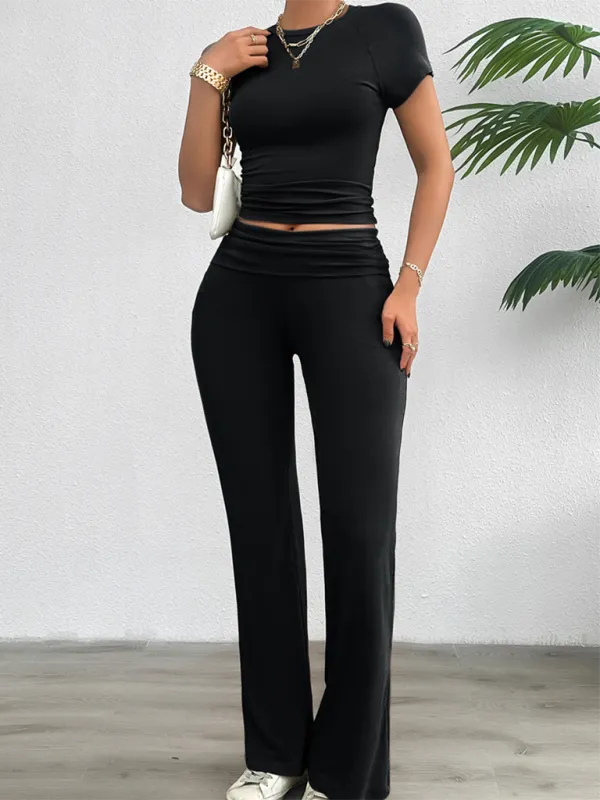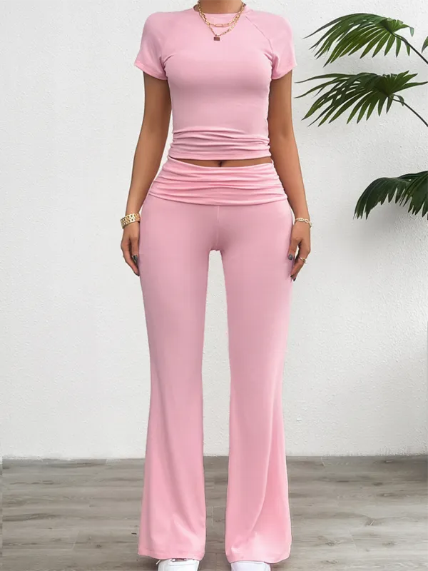 Spring/Summer Casual Solid Color Slim Fit Short Sleeve Long Pants Suit