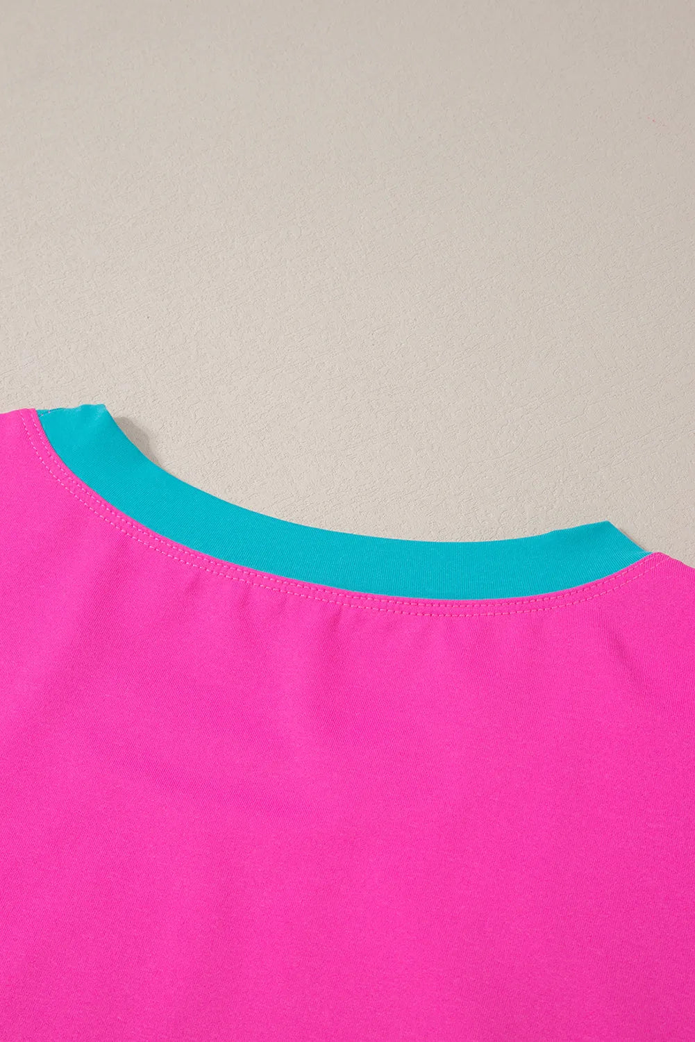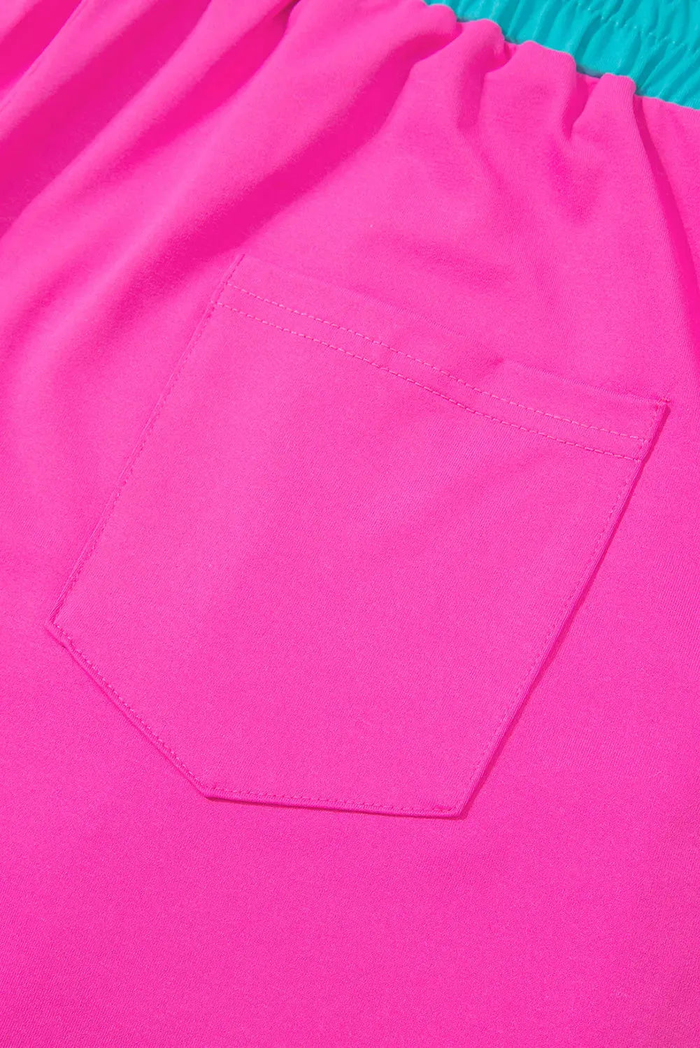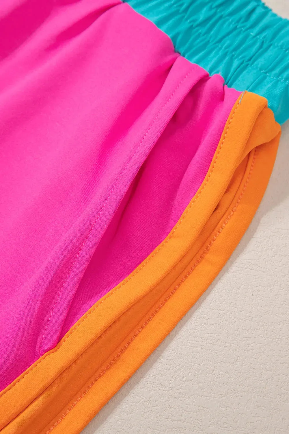 Color Block Loose Fit Top and Wide Leg Shorts Set