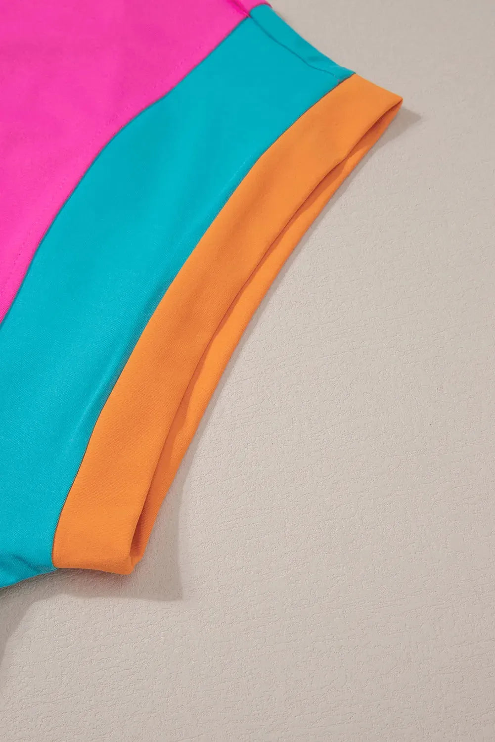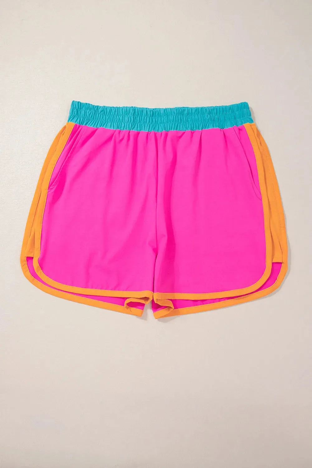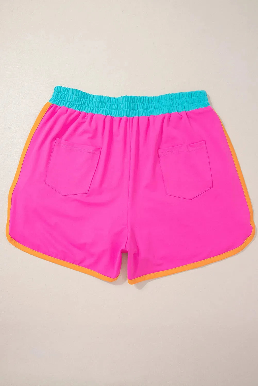 Color Block Loose Fit Top and Wide Leg Shorts Set