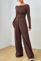 Boat Neck Long Sleeve Top and Pants Set