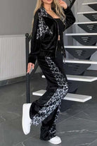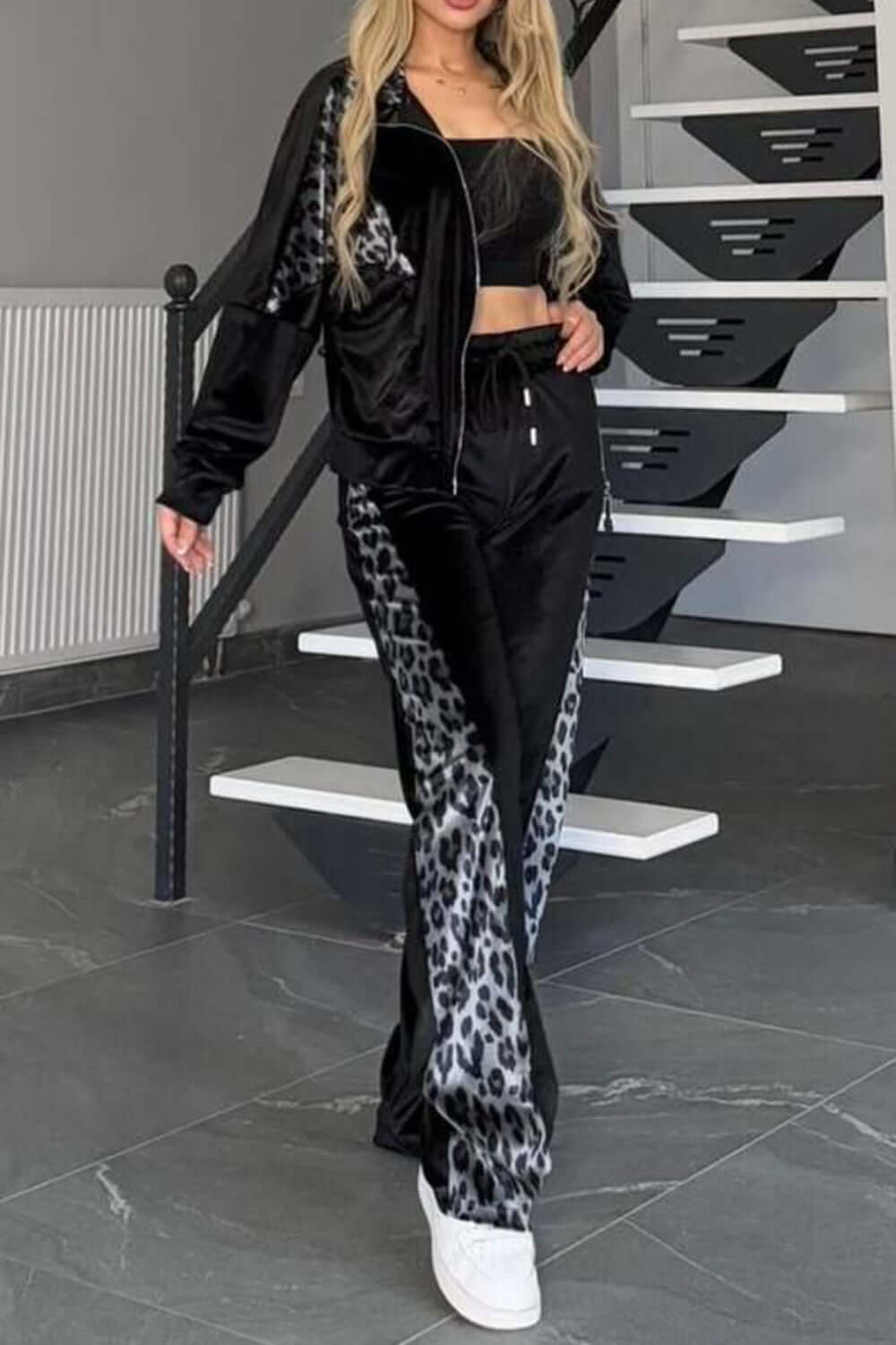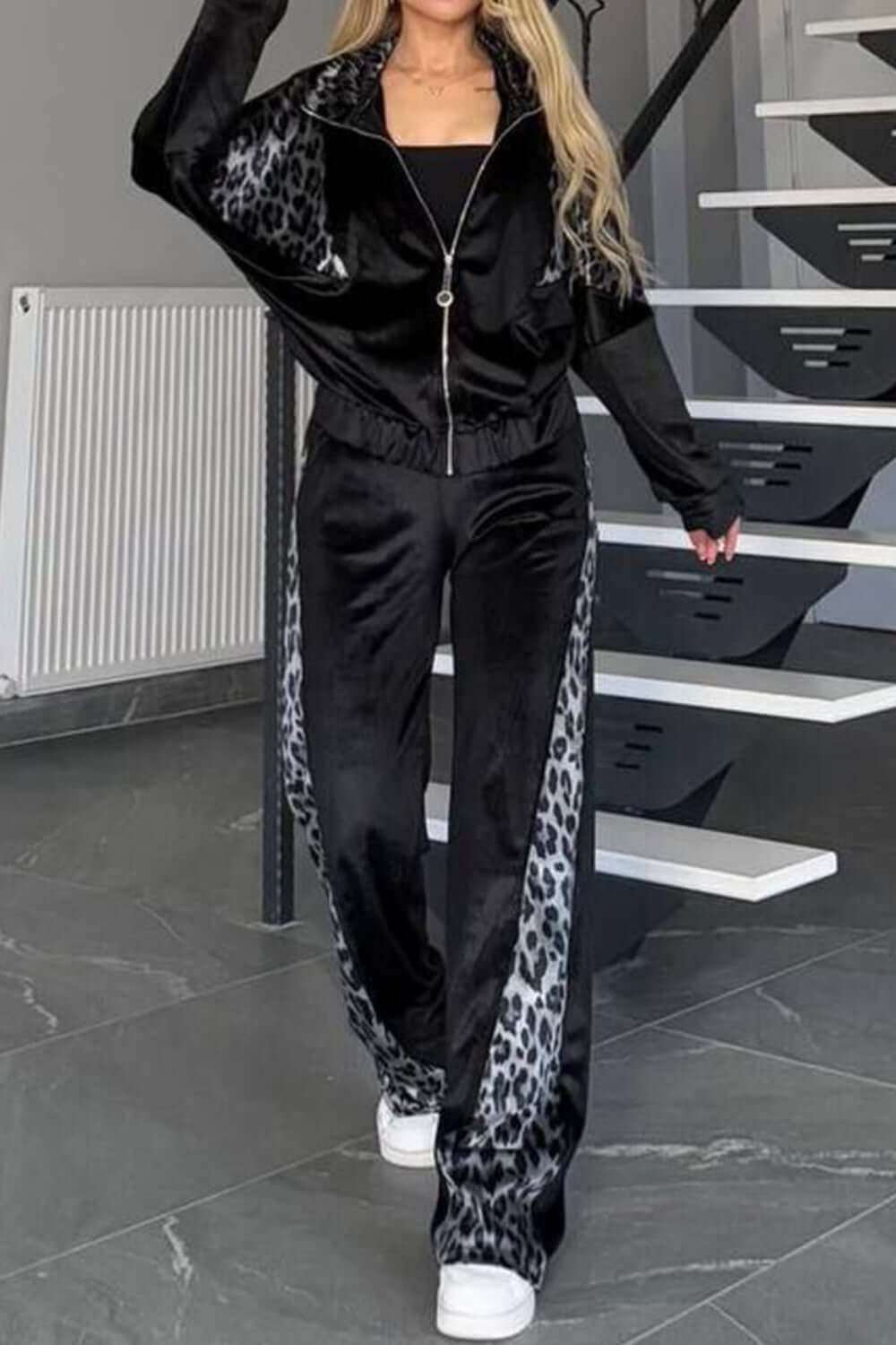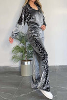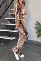 Full Size Collared Neck Leopard Zip Up Top and Pants Set Plus Size