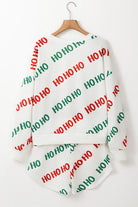 Letter Print Round Neck Long Sleeve Top and Shorts Set