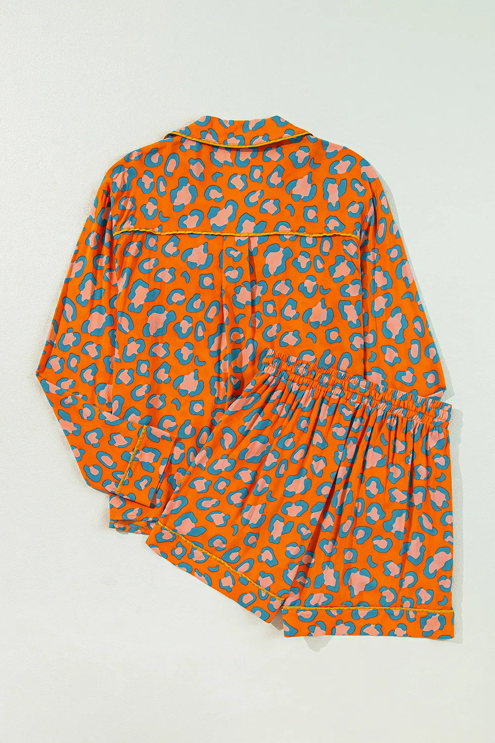 Collared Neck Long Sleeve Loungewear Set with Pockets