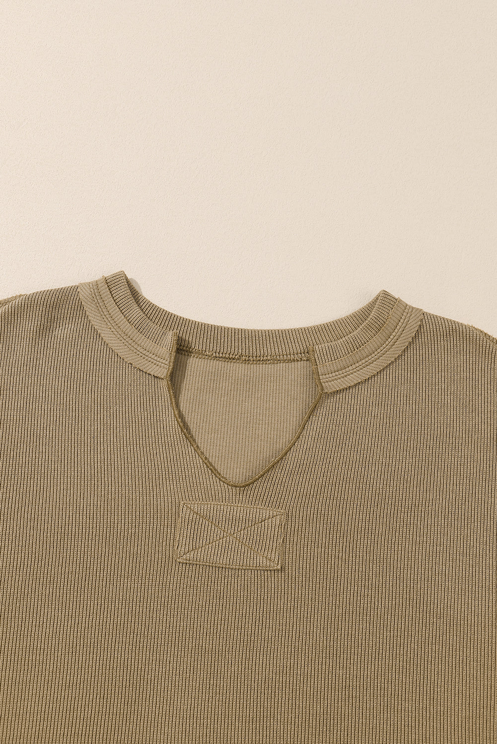 Double Take Full Size Texture Flounce Sleeve Top and Drawstring Shorts Set