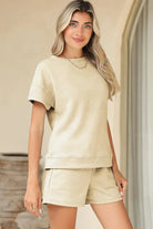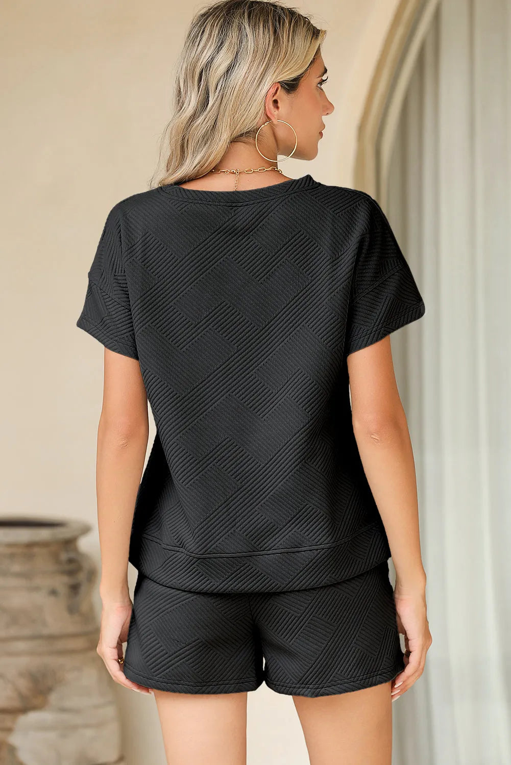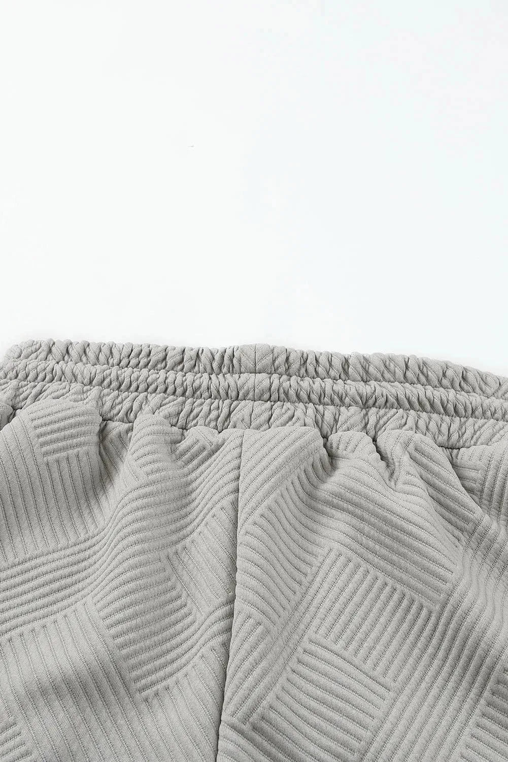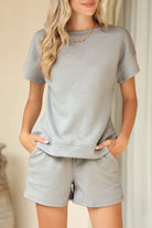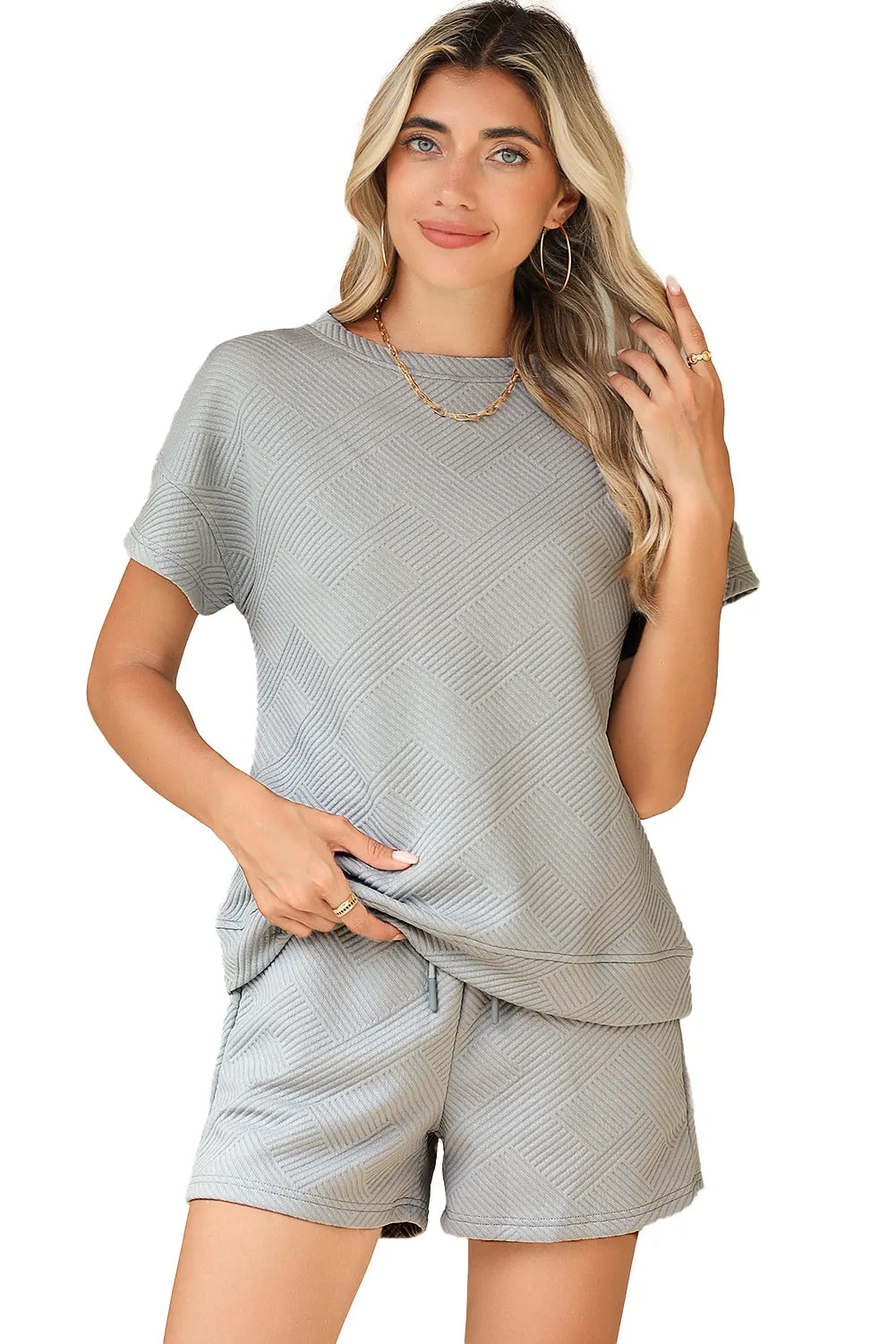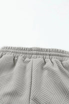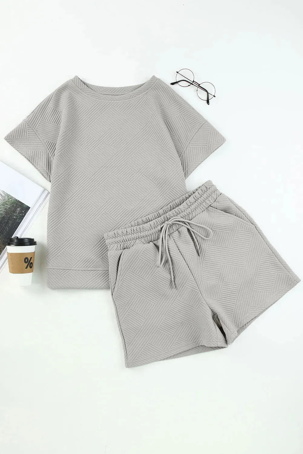 - This shorts set features a simple and stylish design, with a textured fabric that adds depth and dimension to the look.