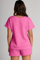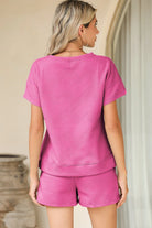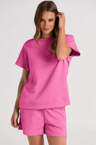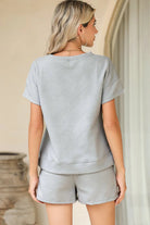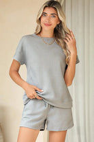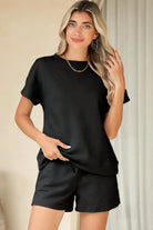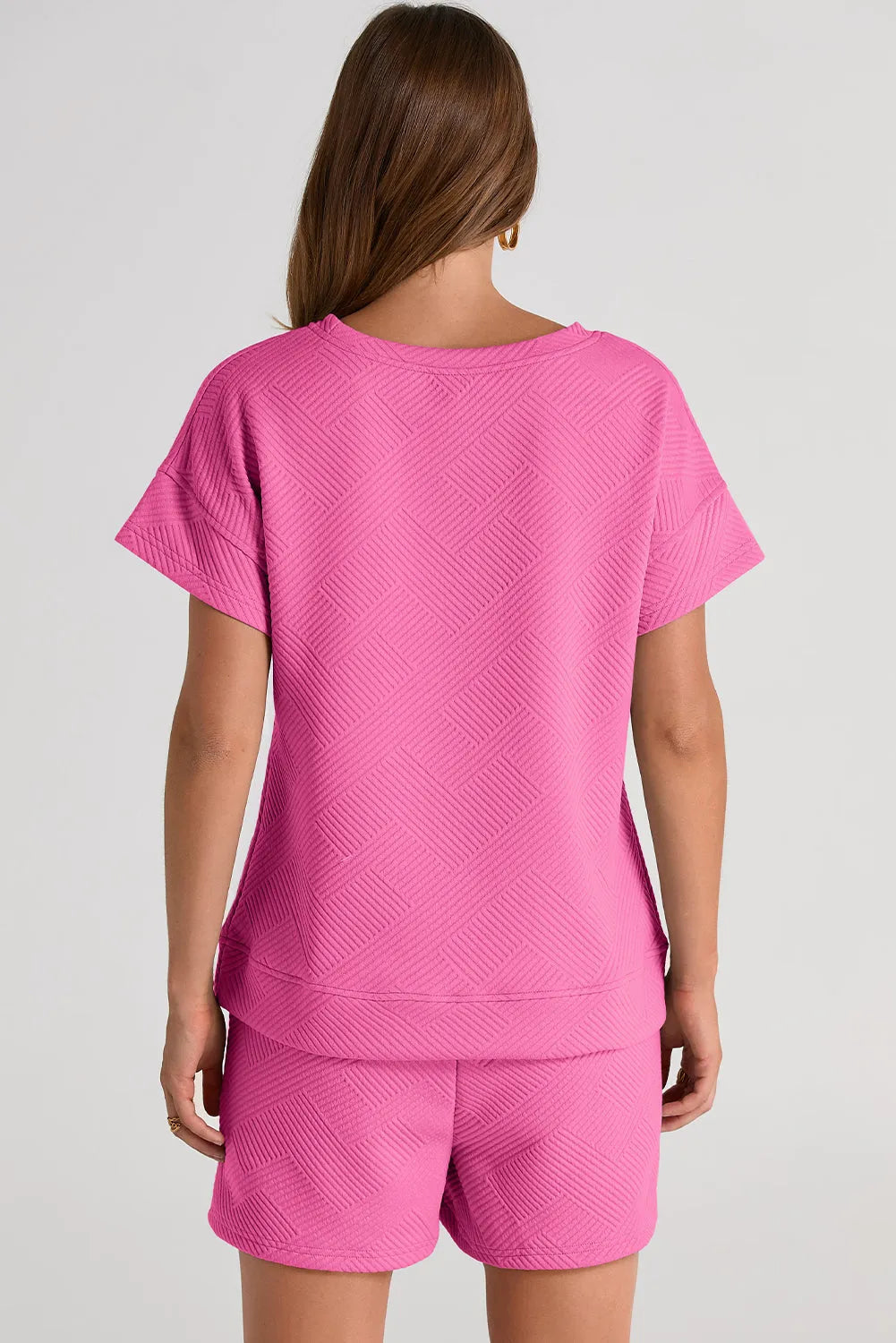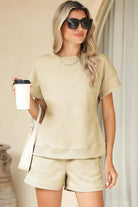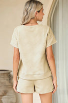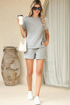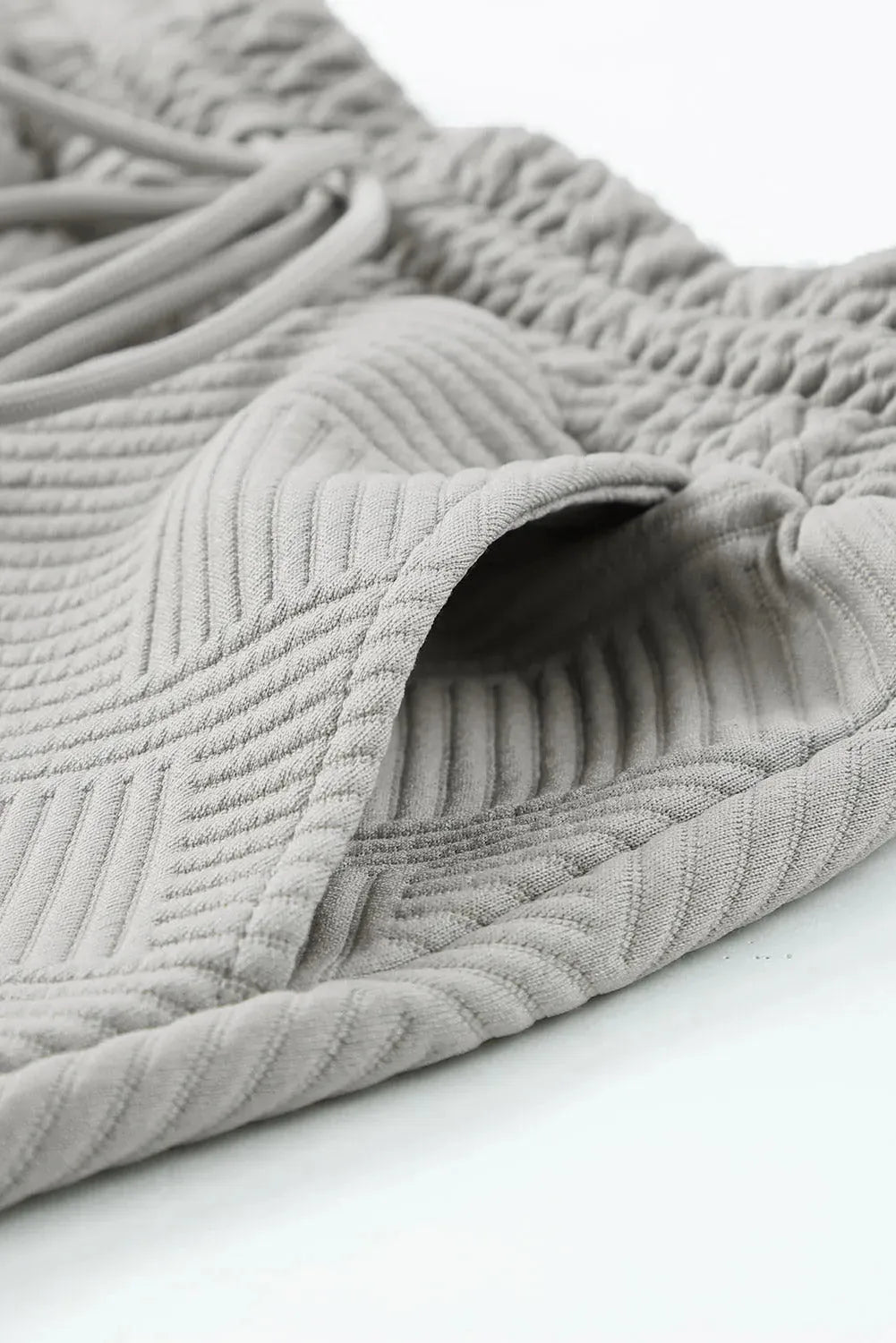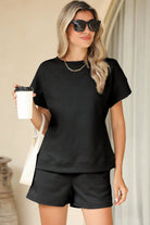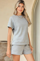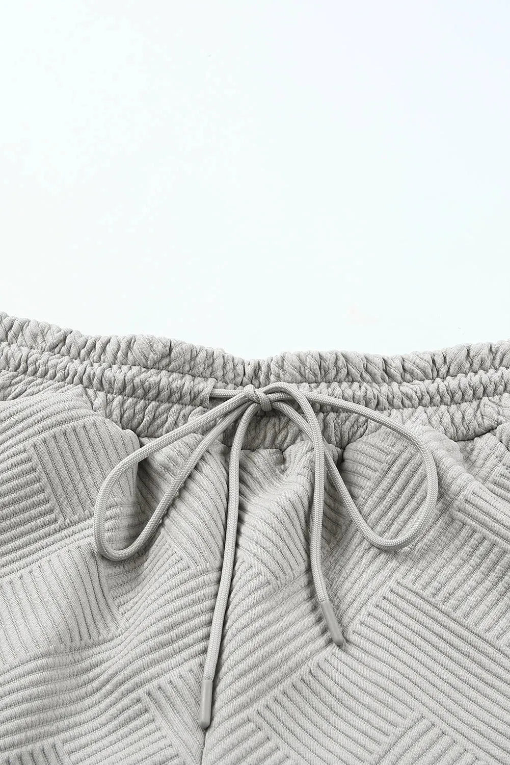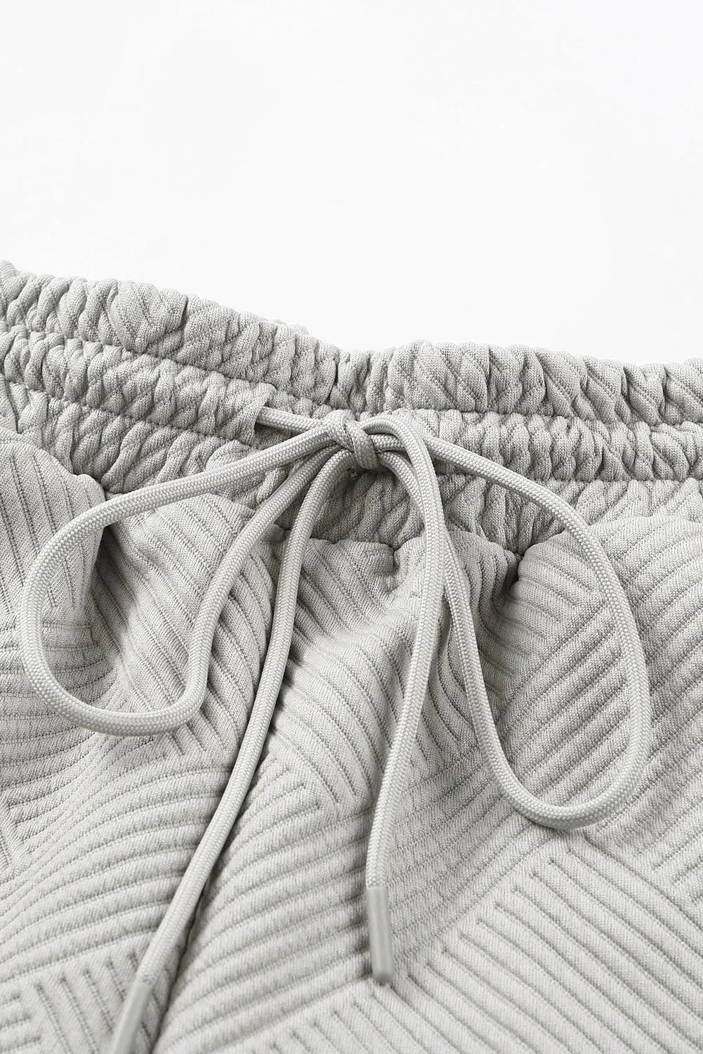 - This shorts set features a simple and stylish design, with a textured fabric that adds depth and dimension to the look.