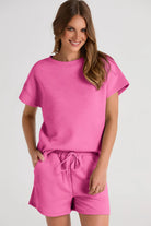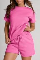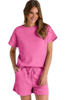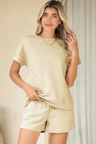 Apricot 2Pcs Solid Textured Drawstring Shorts Set