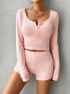 Devine Scoop Neck Long Sleeve Top and Shorts Set