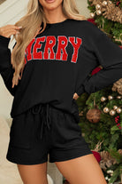 MERRY Round Neck Long Sleeve Top and Shorts Set