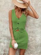 Button Up Sleeveless Top and Drawstring Skirt Set