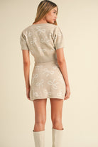 MABLE Bow Pattern Crop Cardigan and Mini Skirt Set
