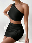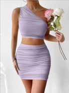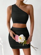 Ruched Single Shoulder Top and Skirt Set