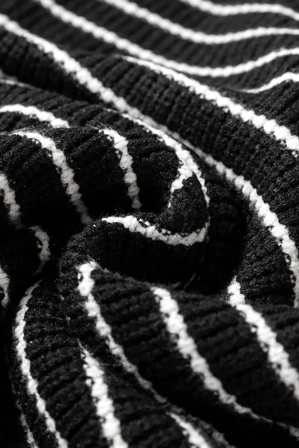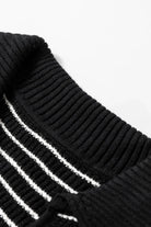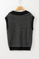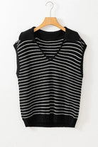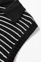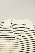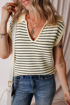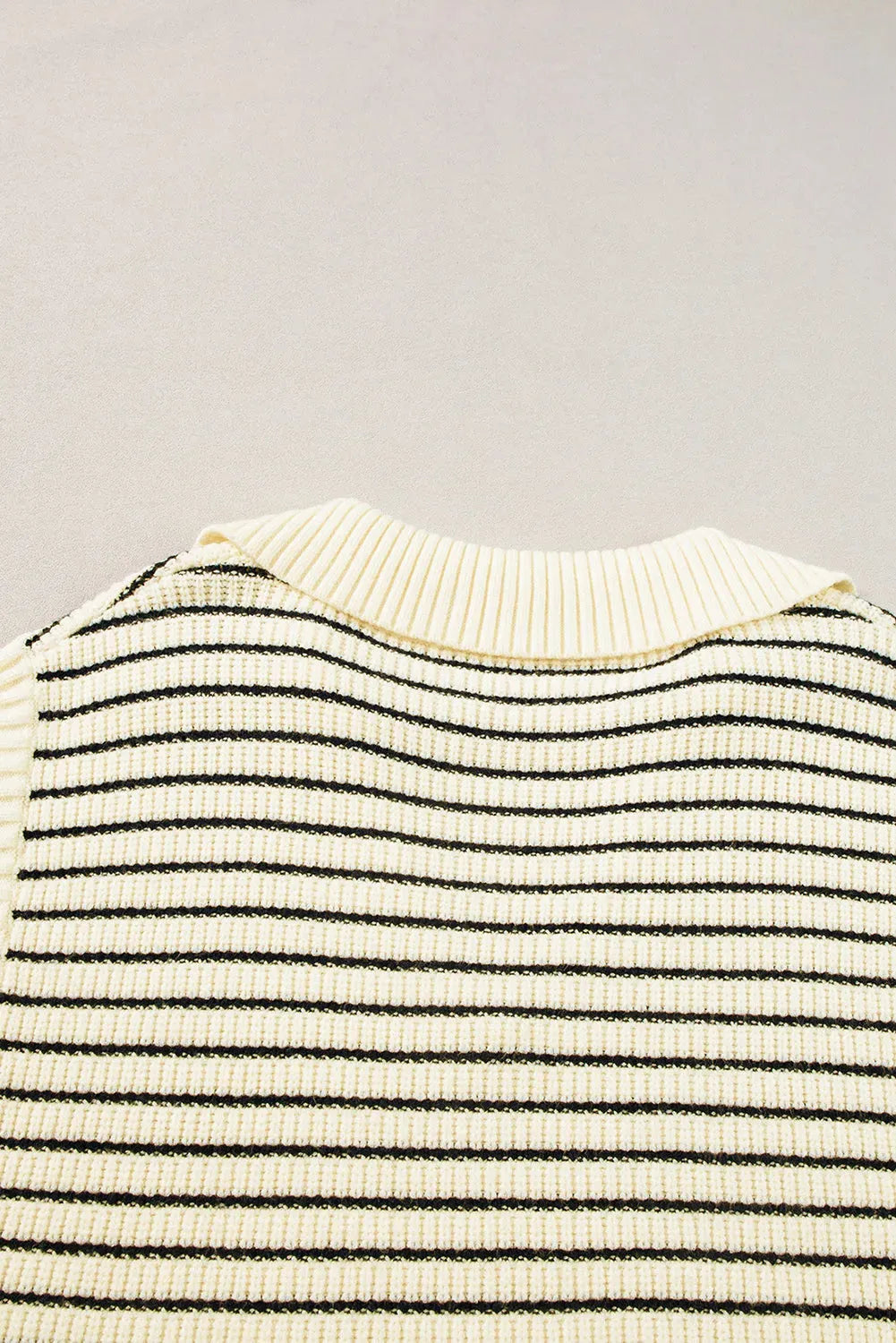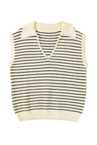 Beige Stripe Turn-down Collar Sleeveless Knitted Top