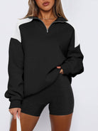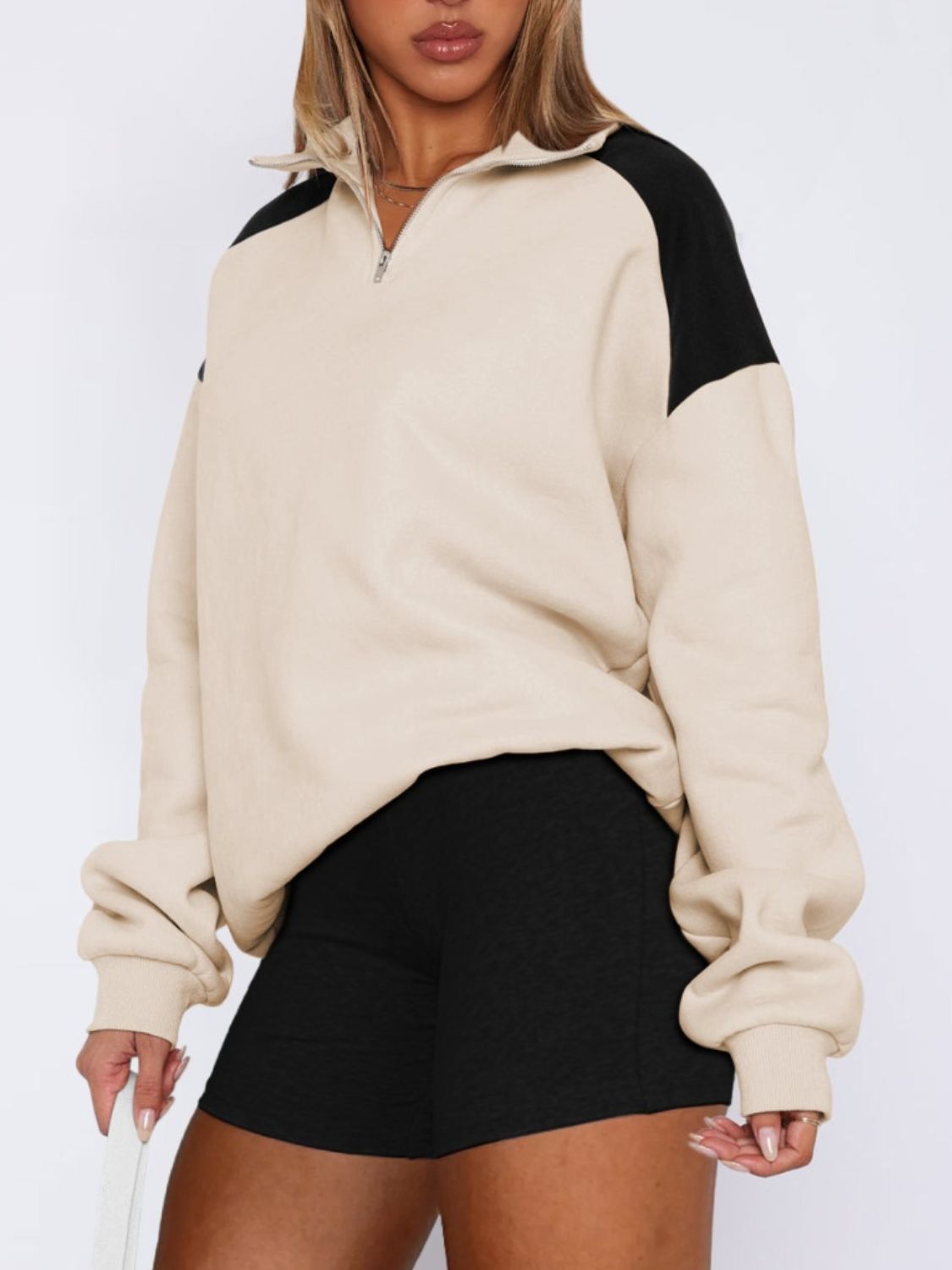 Contrast Quarter Zip Long Sleeve Sweatshirt