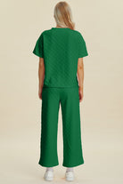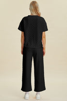 Double Take Full Size Texture Round Neck Short Sleeve Top and Pants Set