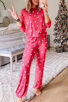 Heart Round Neck Top and Pants Set