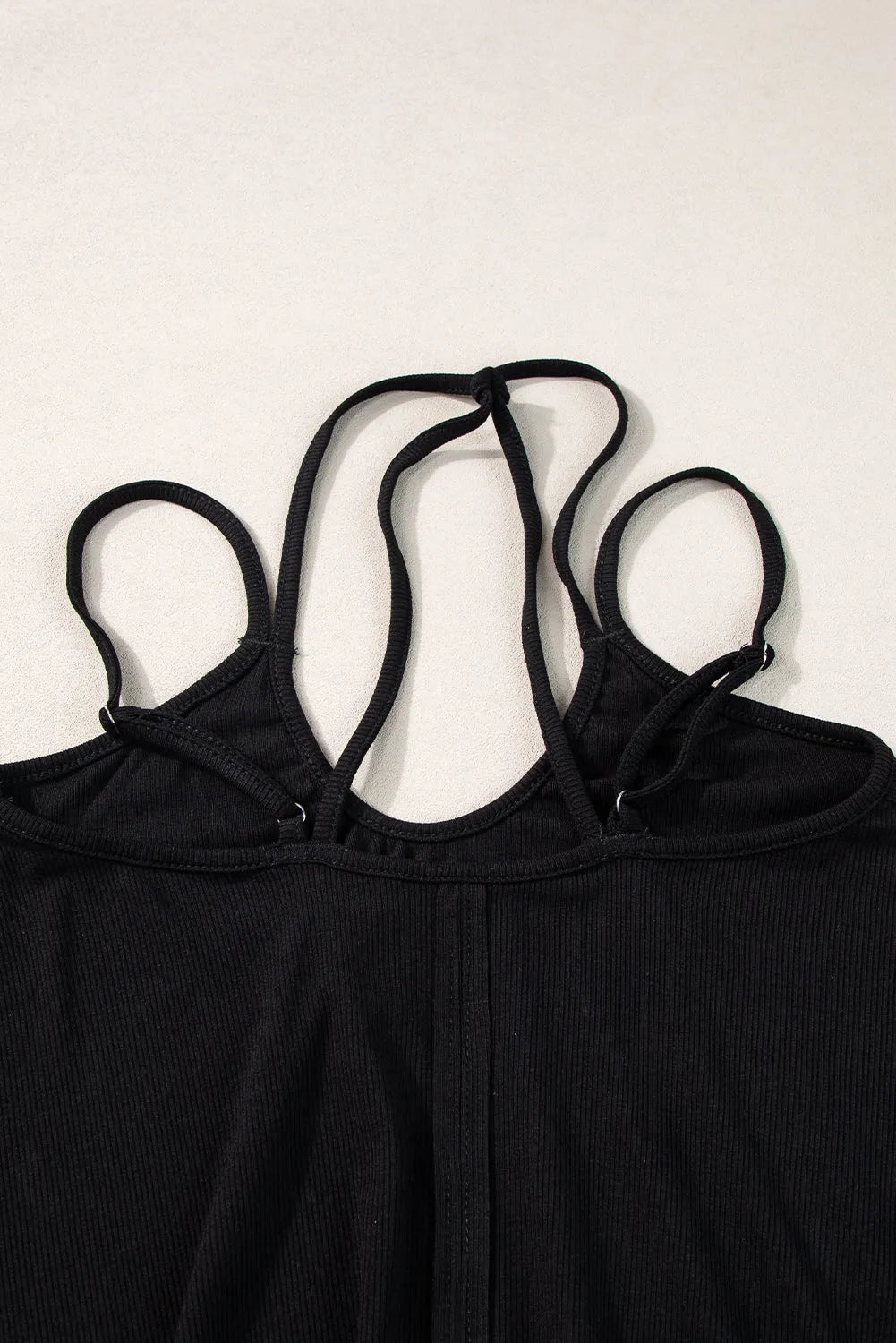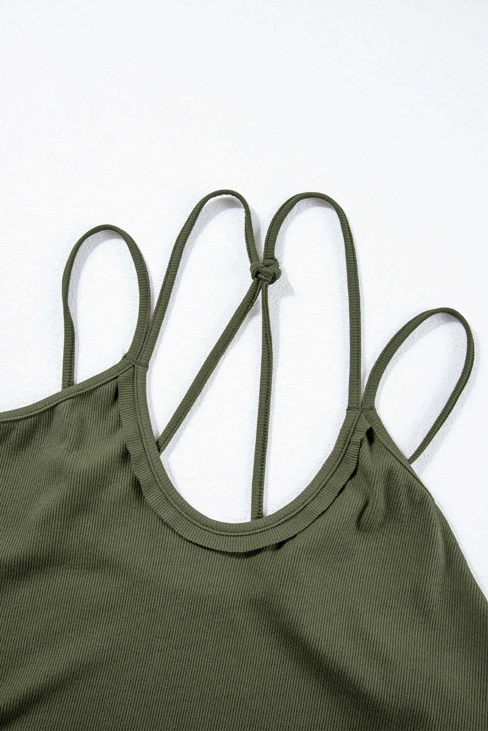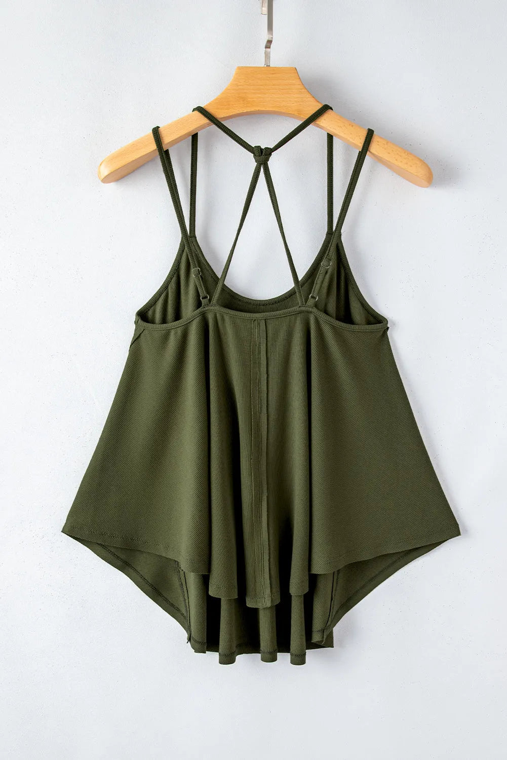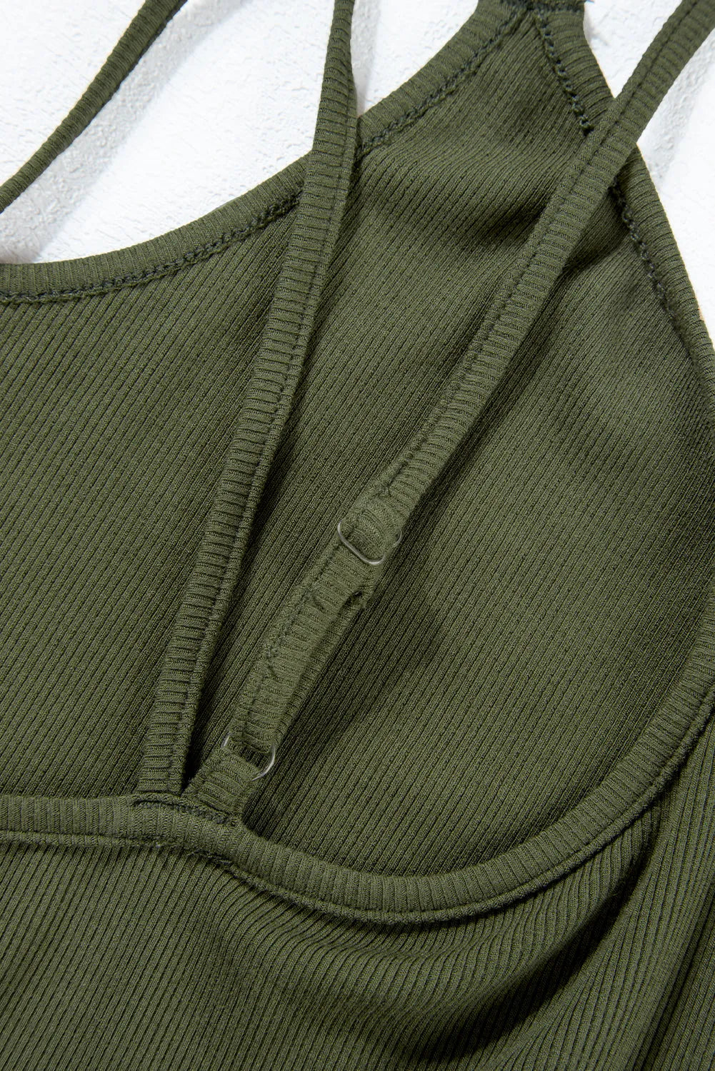 Jungle Green Exposed Seam Detail Double Straps Tank Top