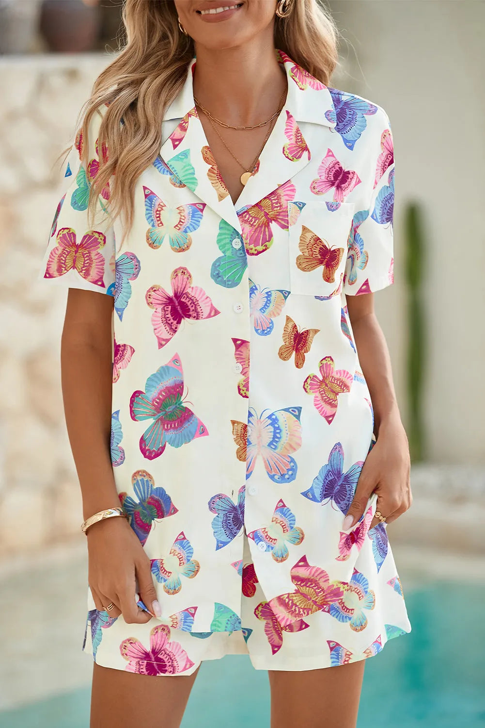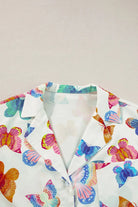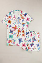 Multicolour Butterfly Print Button-up Shirt & Shorts Pajama Set