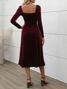 Perfee Sweetheart Neck Long Sleeve Midi Dress