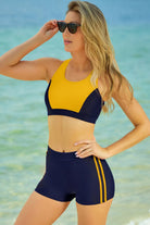 Make a splash in style with our Printed Scoop Neck Back Crisscross Swim Set. This two-piece set is perfect for beach days and pool parties, offering a comfortable and chic look that will turn heads.