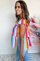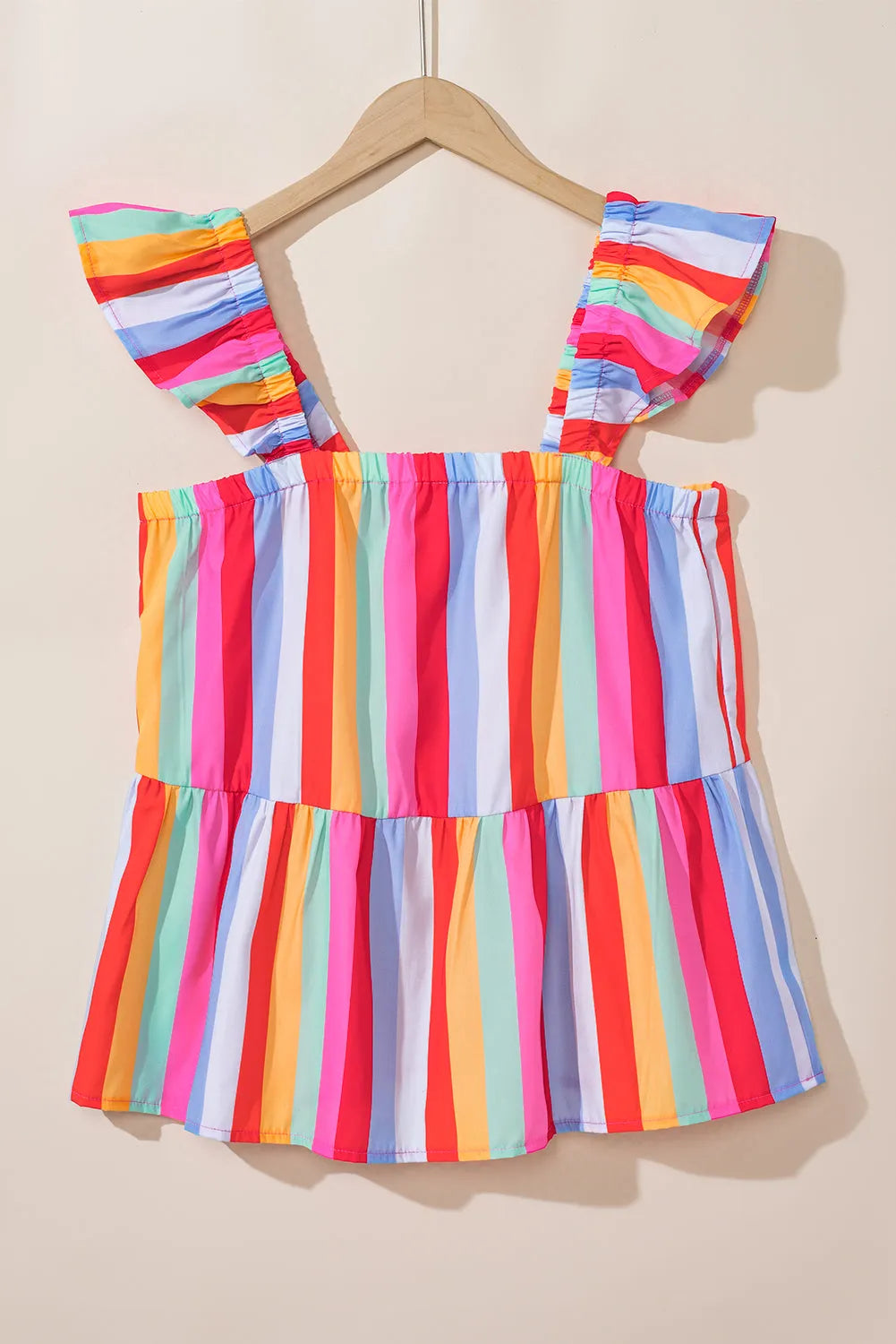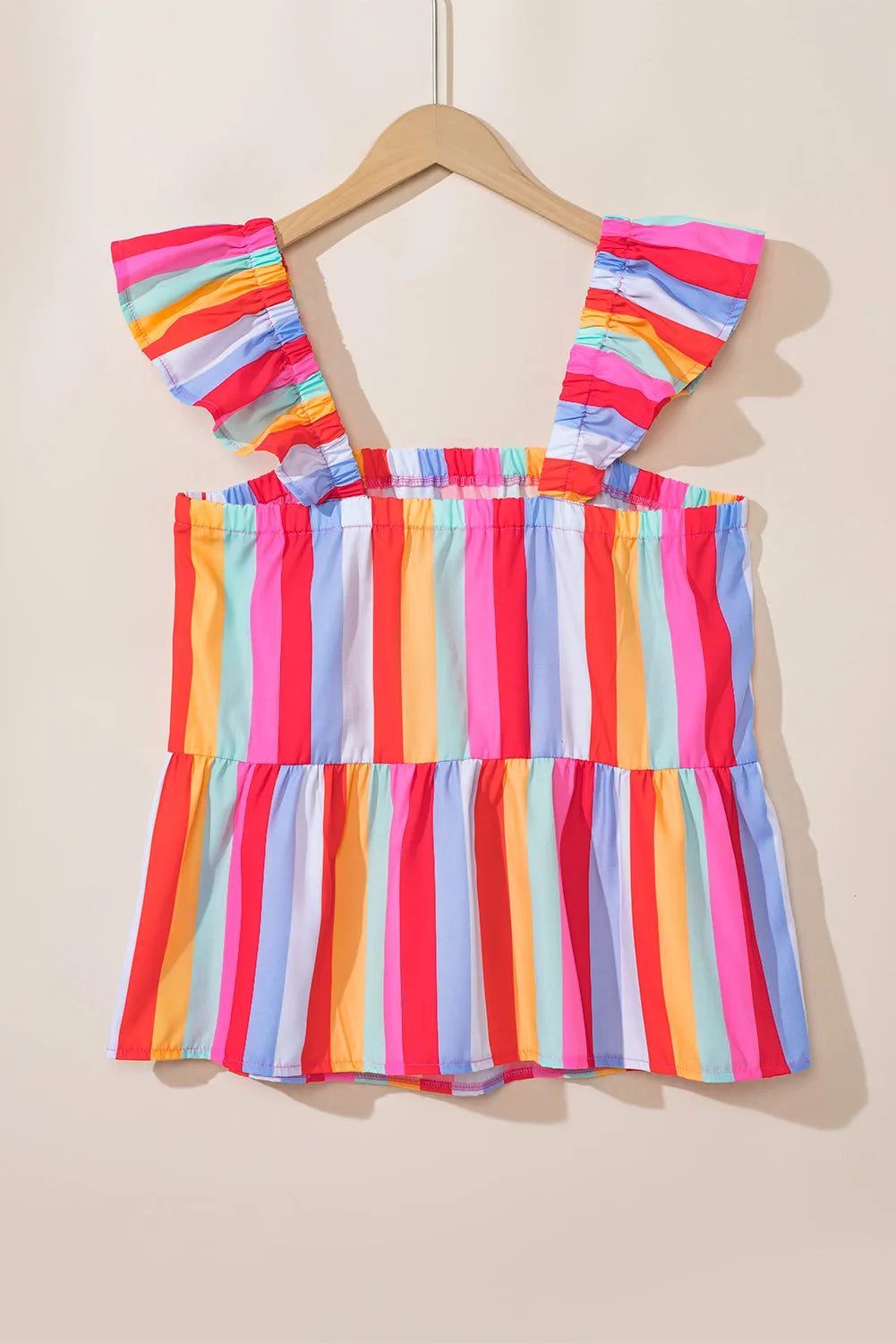 Red Stripe Ruffled Straps Babydoll Tank Top