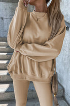 Round Neck Dropped Shoulder Sweatshirt and Pants Set