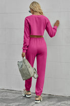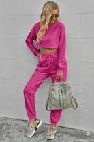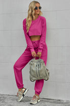 Round Neck Long Sleeve Cropped Top and Pants Set