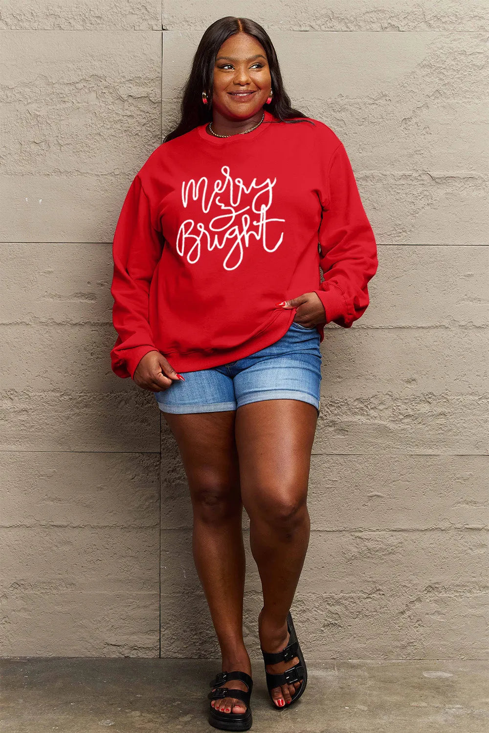 Simply Love Full Size MERRY AND BRIGHT Graphic Sweatshirt