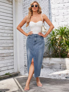 Slit Midi Denim Skirt with Pockets